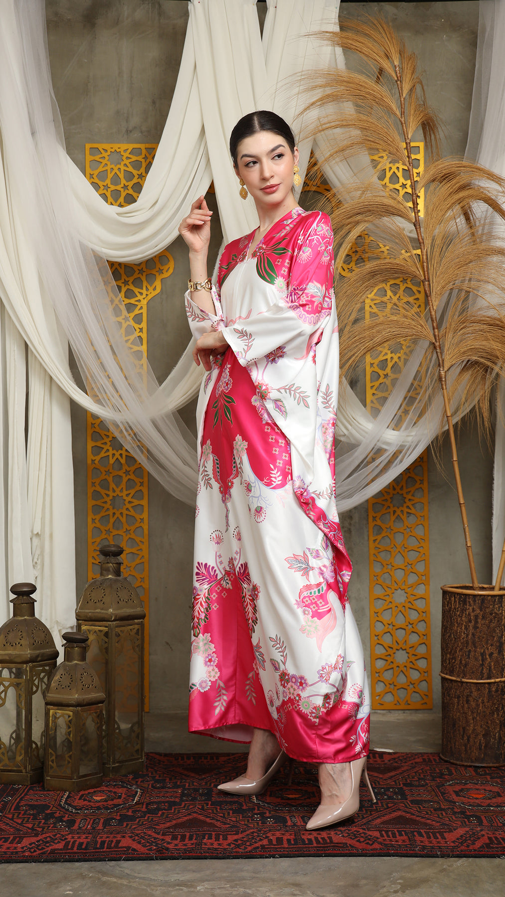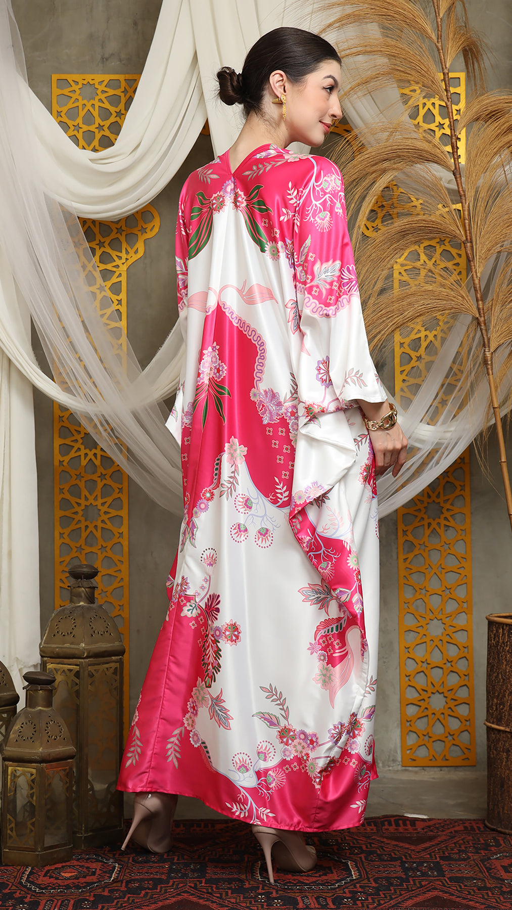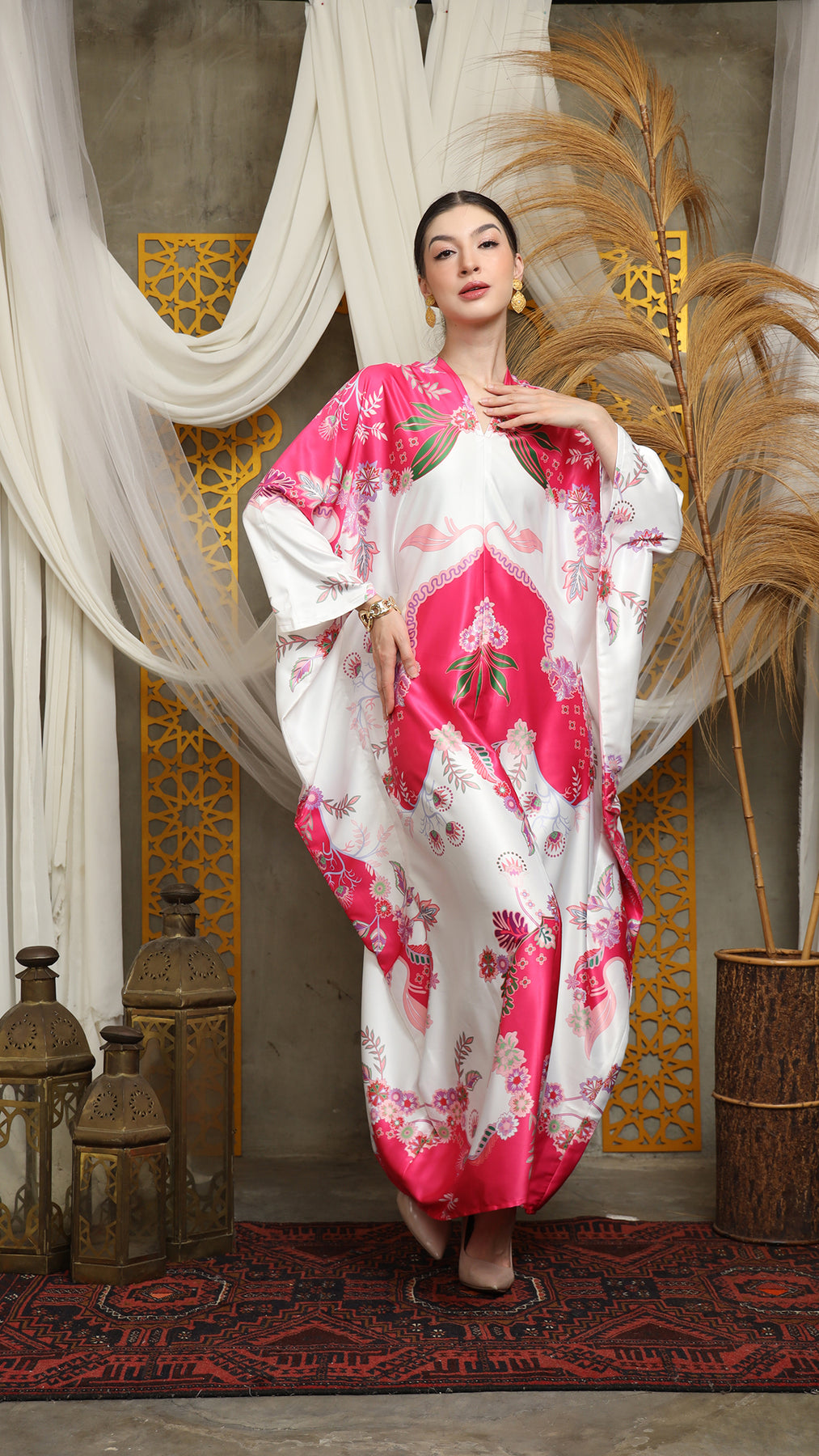 This kaftan is made from lightweight satin material, which has super comfortable to lounge around in, adjustable drawstring and flattering neckline is an added feature which offers a glamorous way to cover up and perfect for evening wear.