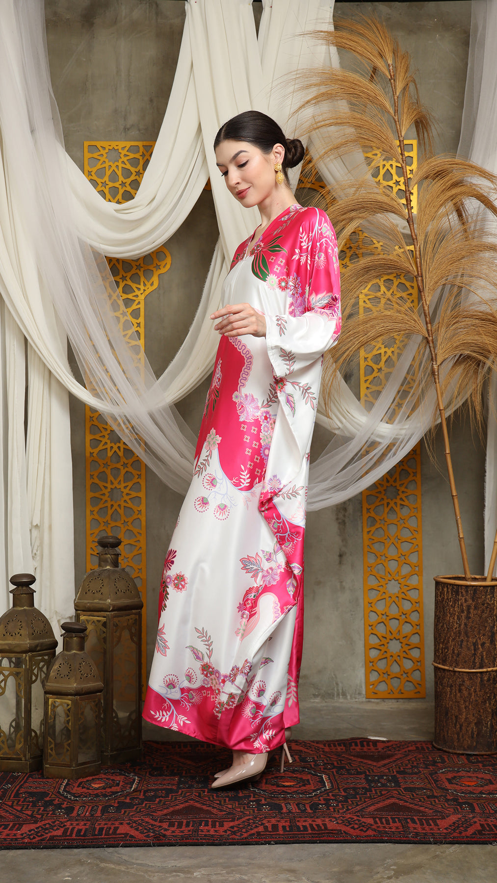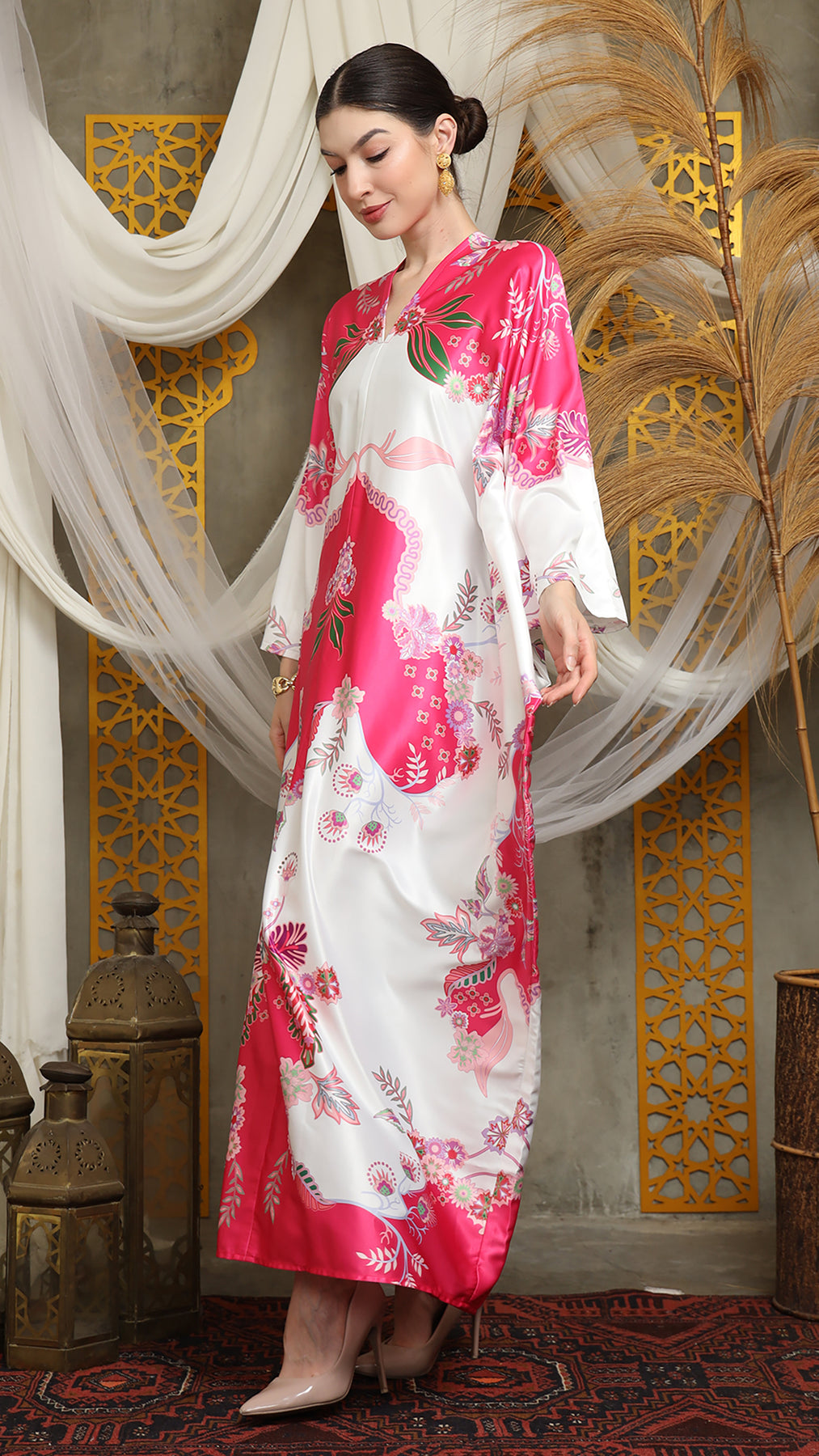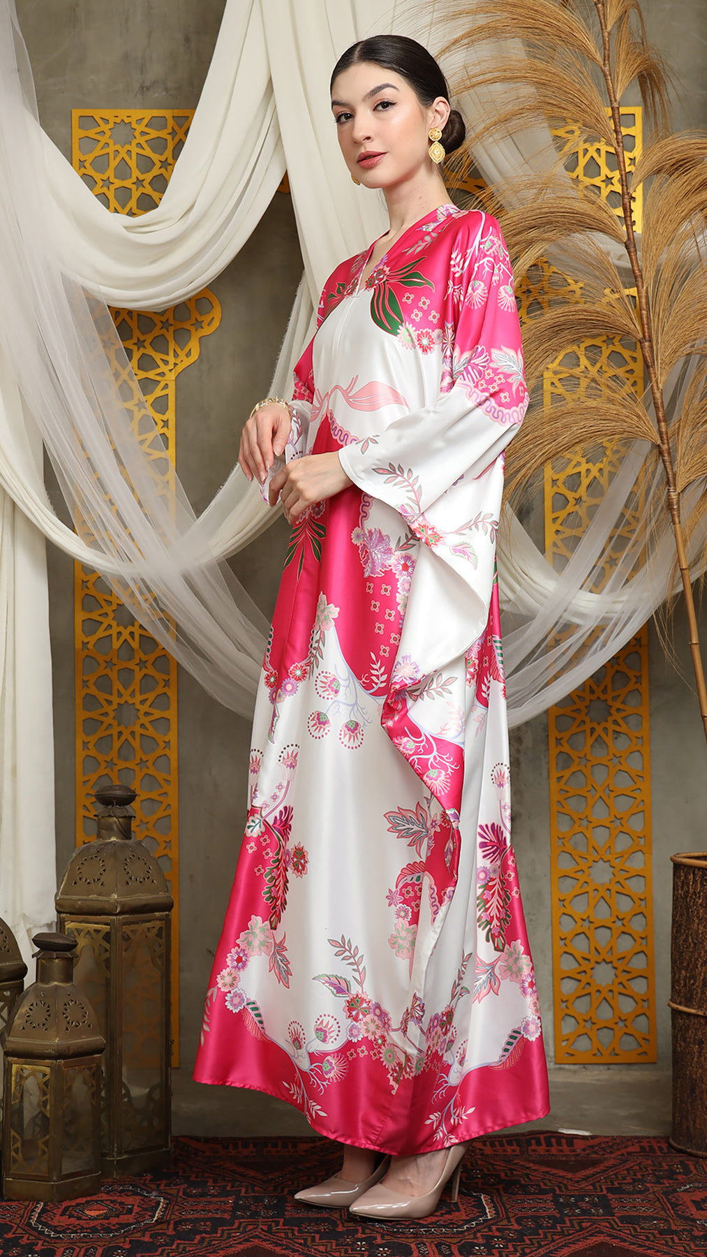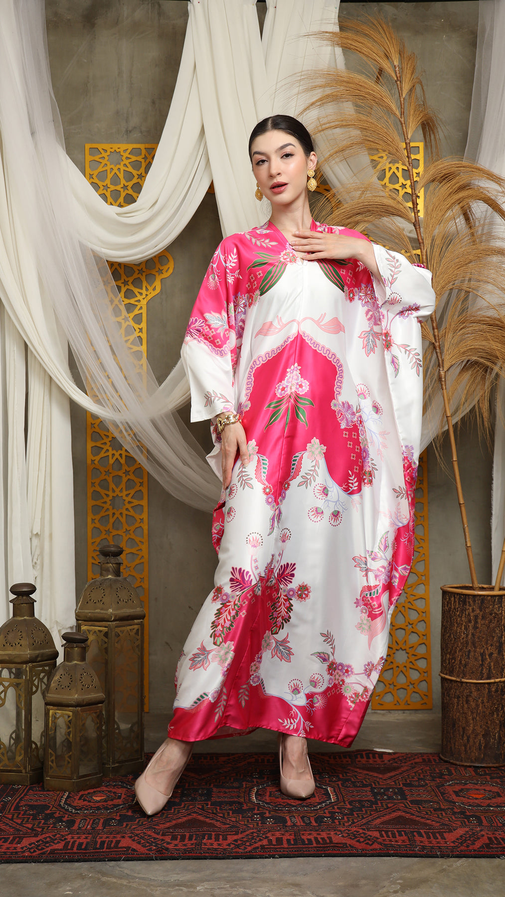 This kaftan is made from lightweight satin material, which has super comfortable to lounge around in, adjustable drawstring and flattering neckline is an added feature which offers a glamorous way to cover up and perfect for evening wear.