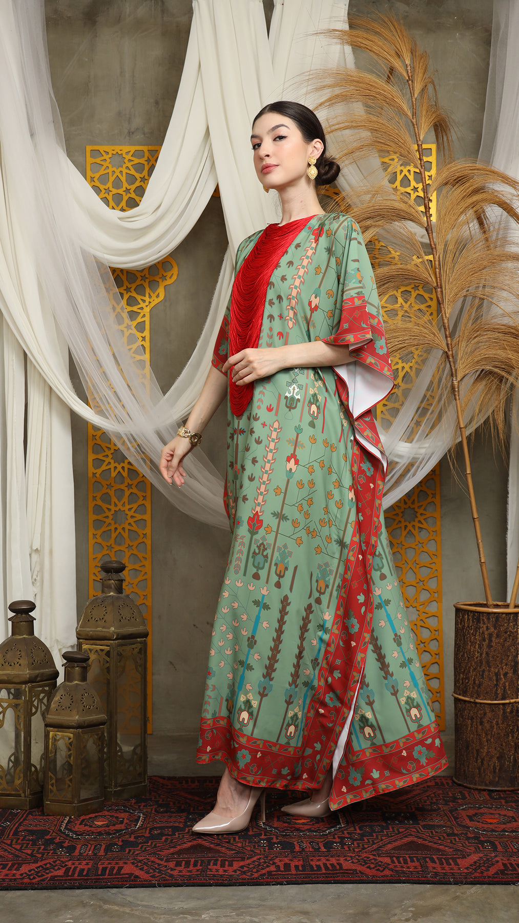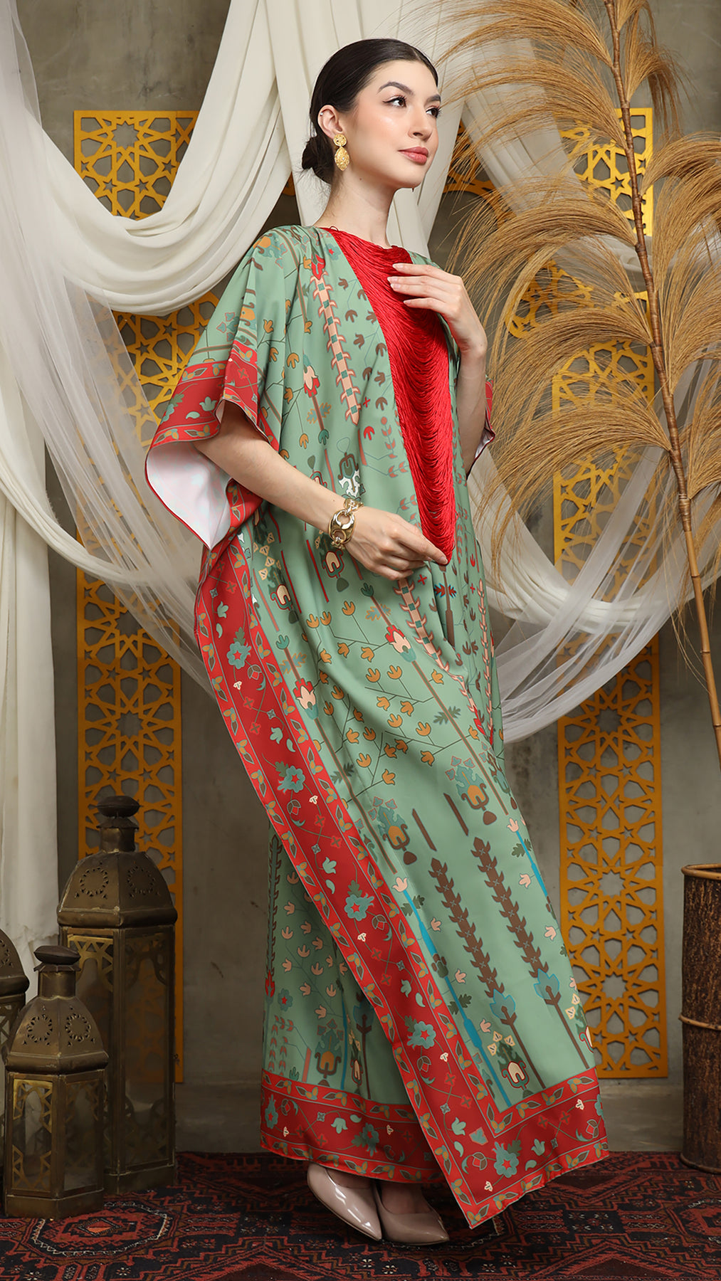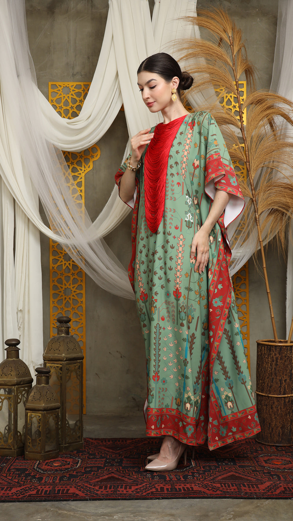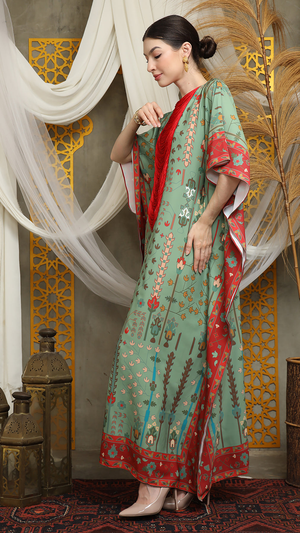 This kaftan is made from premium satin material, which has super comfortable to lounge around in, adjustable drawstring which offers a glamorous way to cover up and perfect for evening wear. A short fringe kaftan that brings effortless drama and easy elegance. Cut in a relaxed, breezy silhouette, it drapes beautifully over the body while allowing freedom of movement. The playful fringe detailing adds texture and motion, swaying with every step for a touch of bohemian glamour