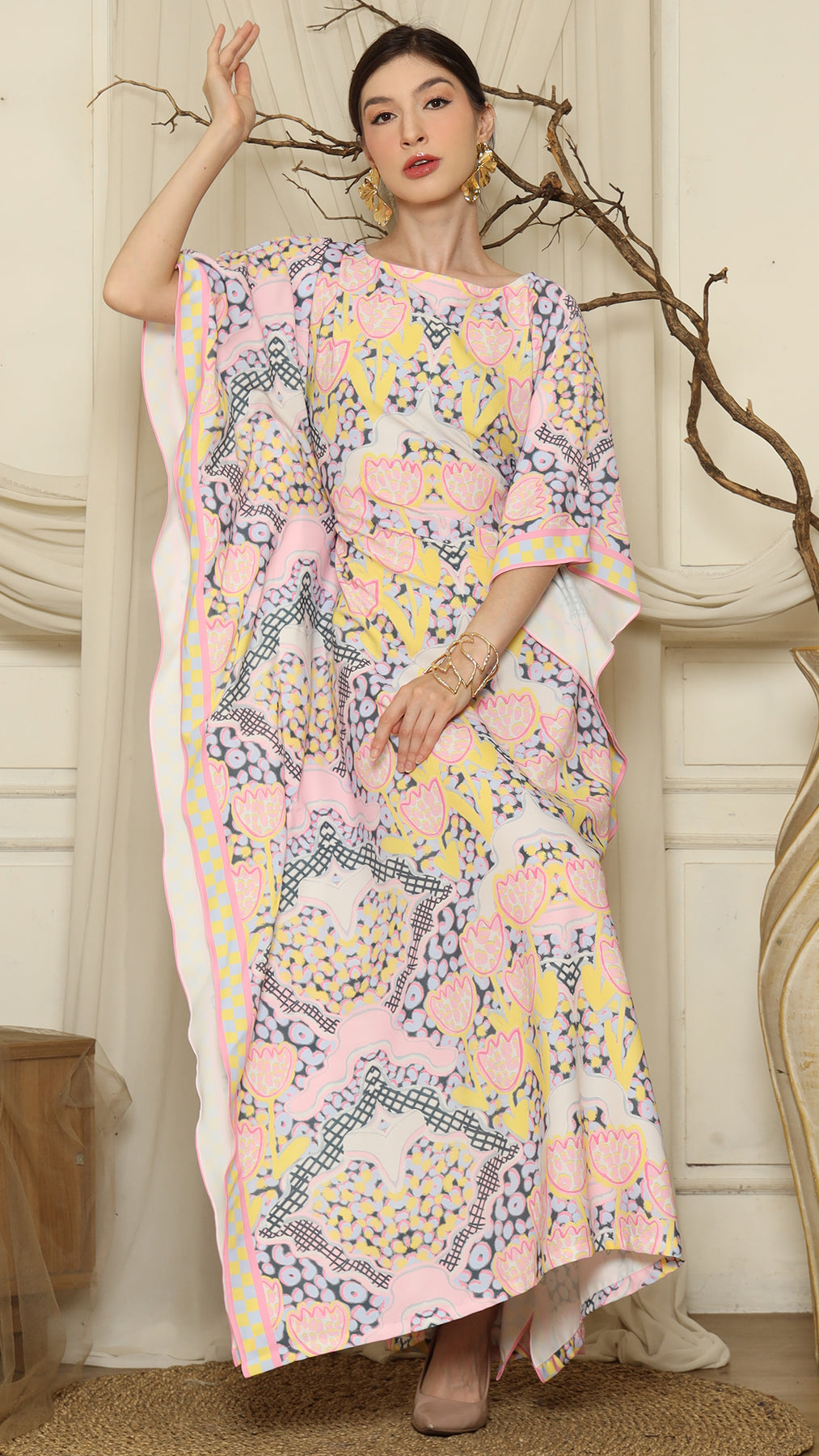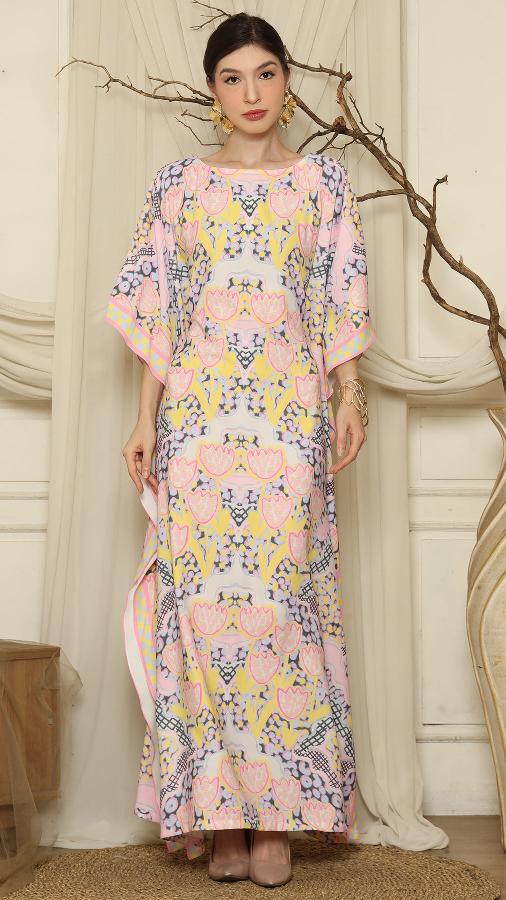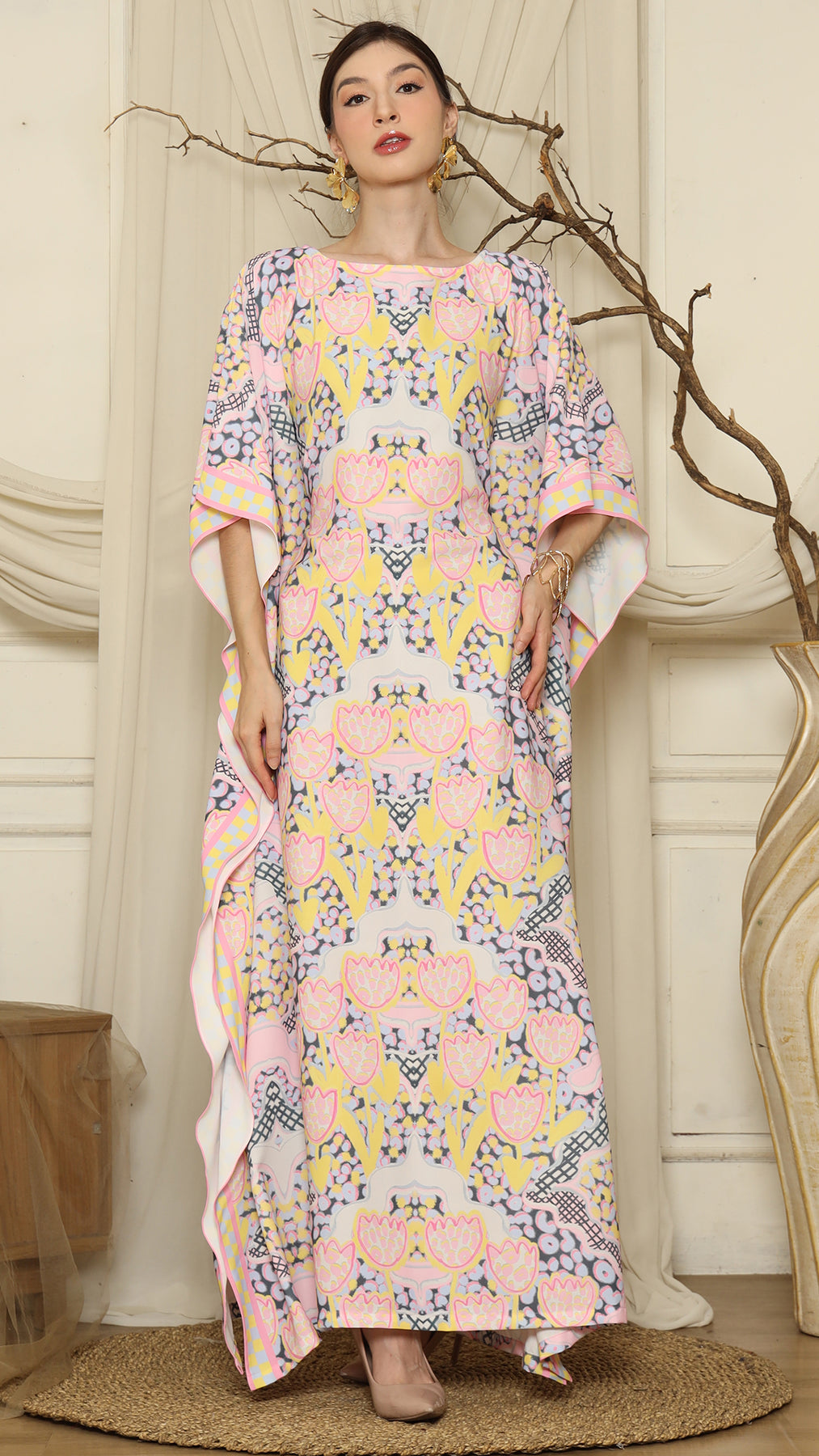 This kaftan is made from lightweight satin material, which has super comfortable to lounge around in, adjustable drawstring and flattering neckline is an added feature which offers a glamorous way to cover up and perfect for evening wear.