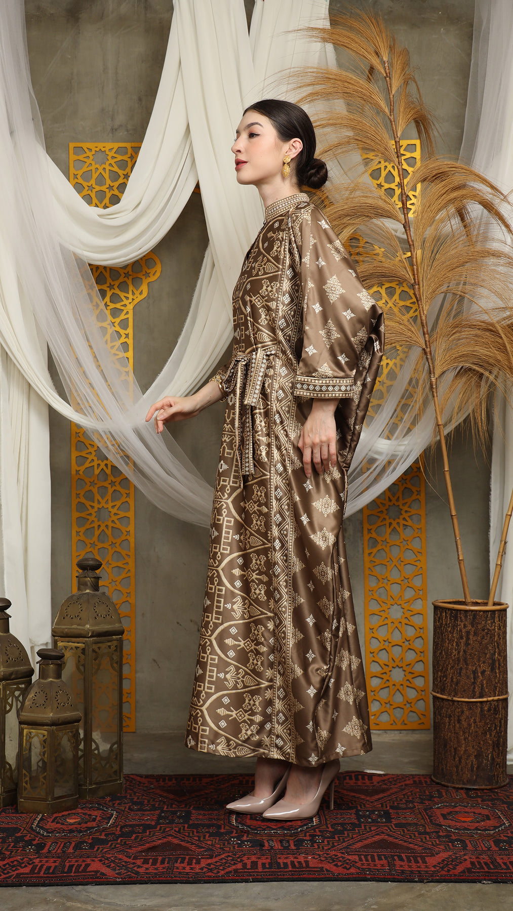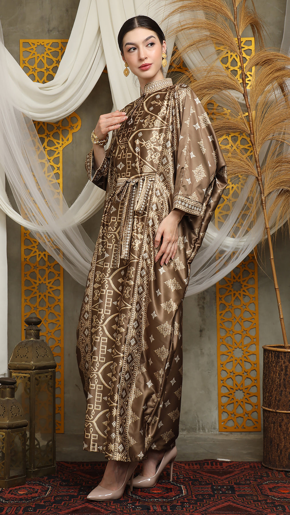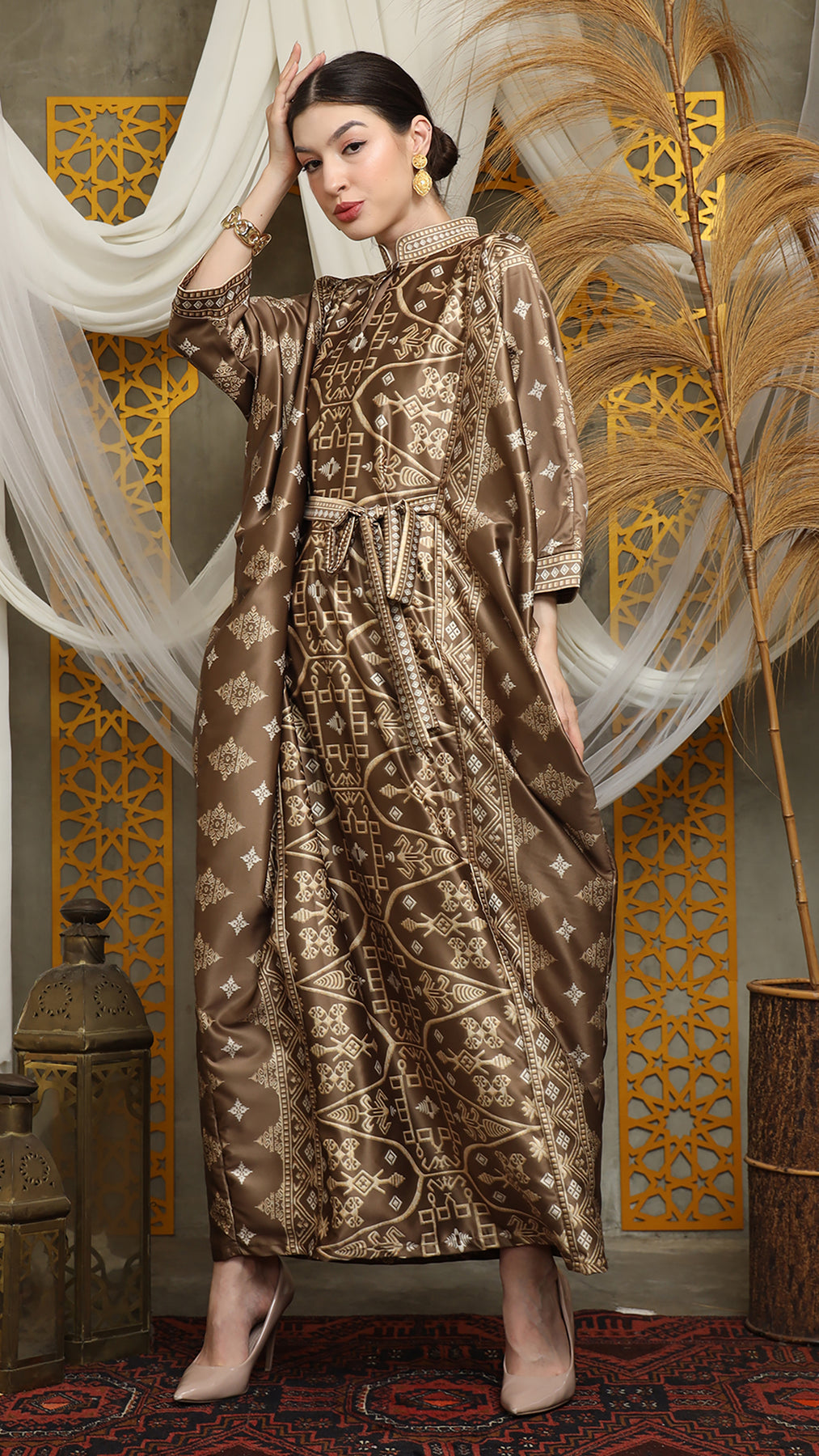 This featured dress kaftan is a true masterpiece. It offers a flattering fit that enhances your silhouette from every angle. Made from non-transparent fabric, it ensures confidence and comfort, allowing you to move with grace and poise.