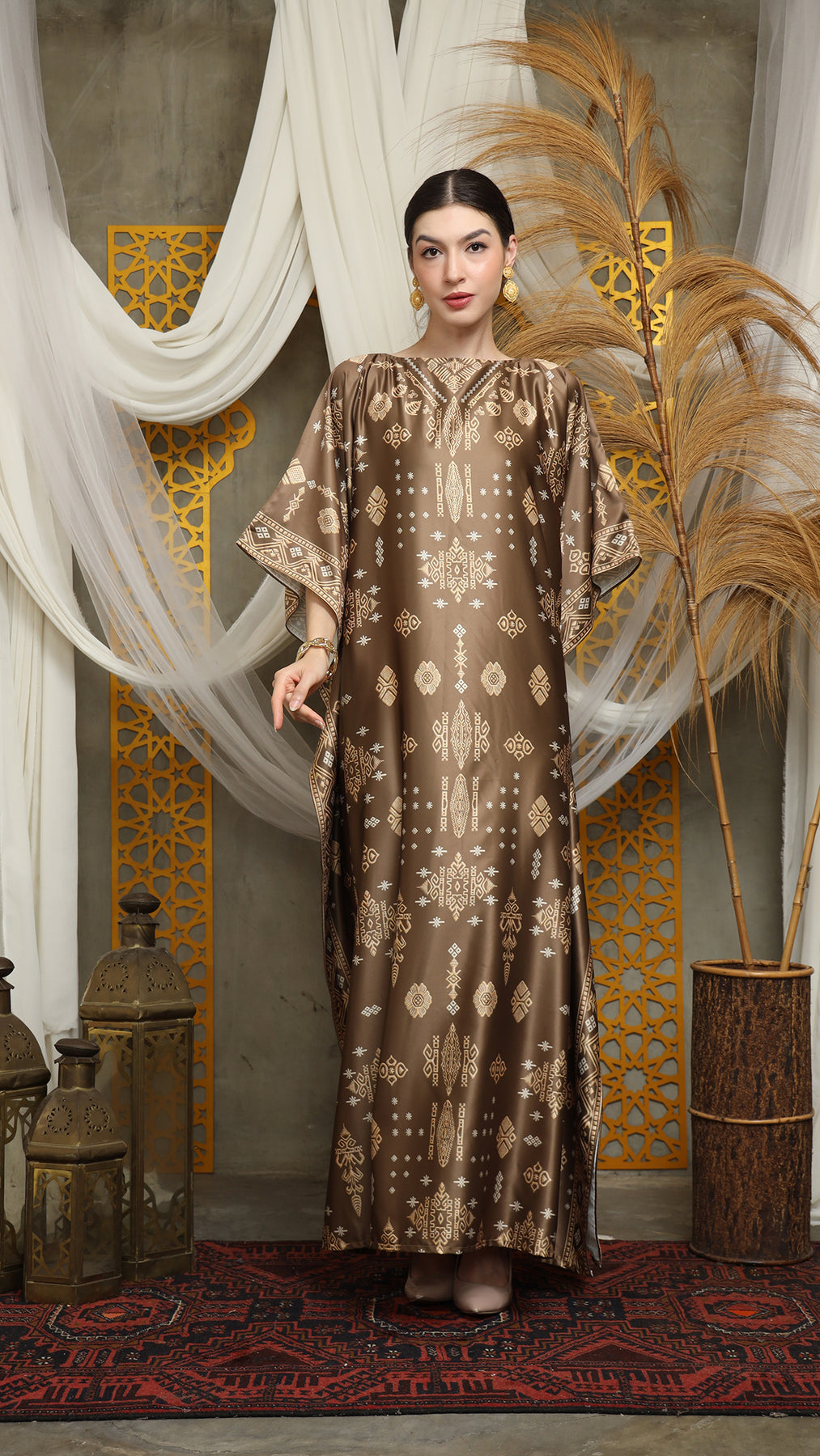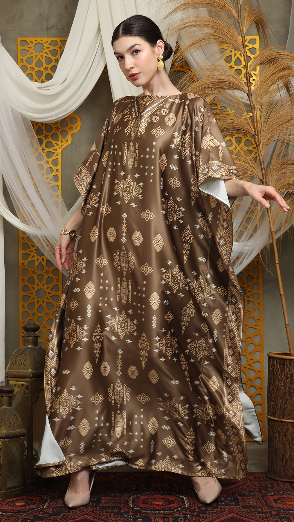 This featured kaftan is a true masterpiece. It offers a flattering fit that enhances your silhouette from every angle. Made from non-transparent fabric, it ensures confidence and comfort, allowing you to move with grace and poise.