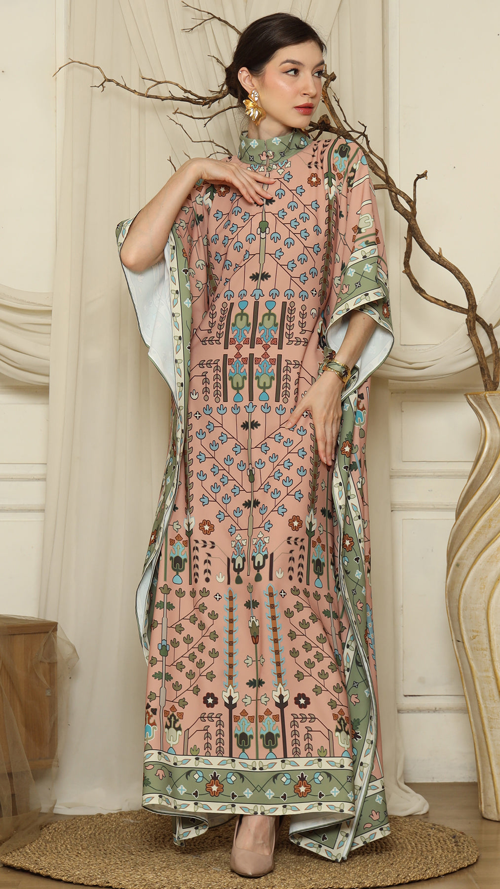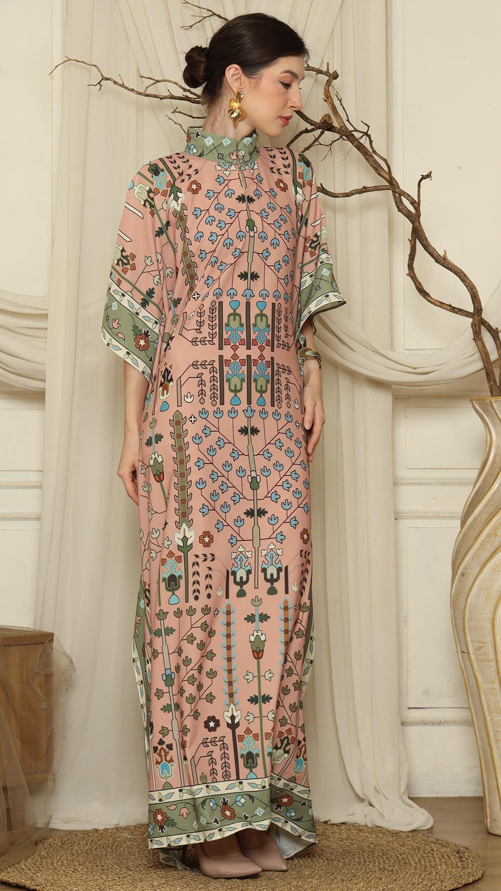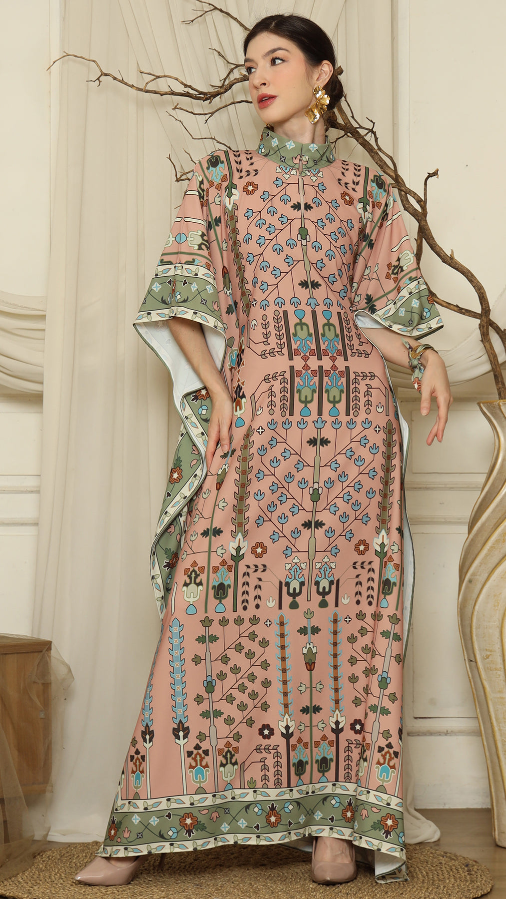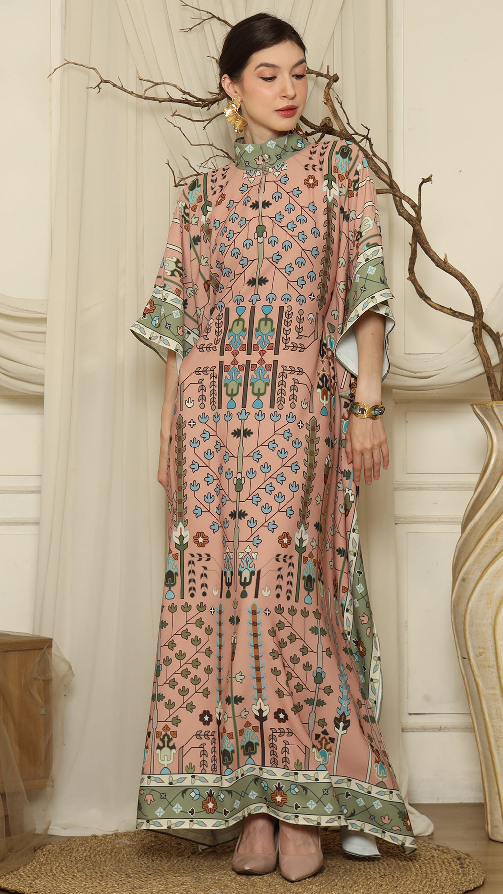 This kaftan made from lightweight satin material, which has super comfortable to lounge around in, adjustable drawstring and High Collar neckline with front buttons is an added feature which offers a glamorous way to cover up and perfect for evening wear.