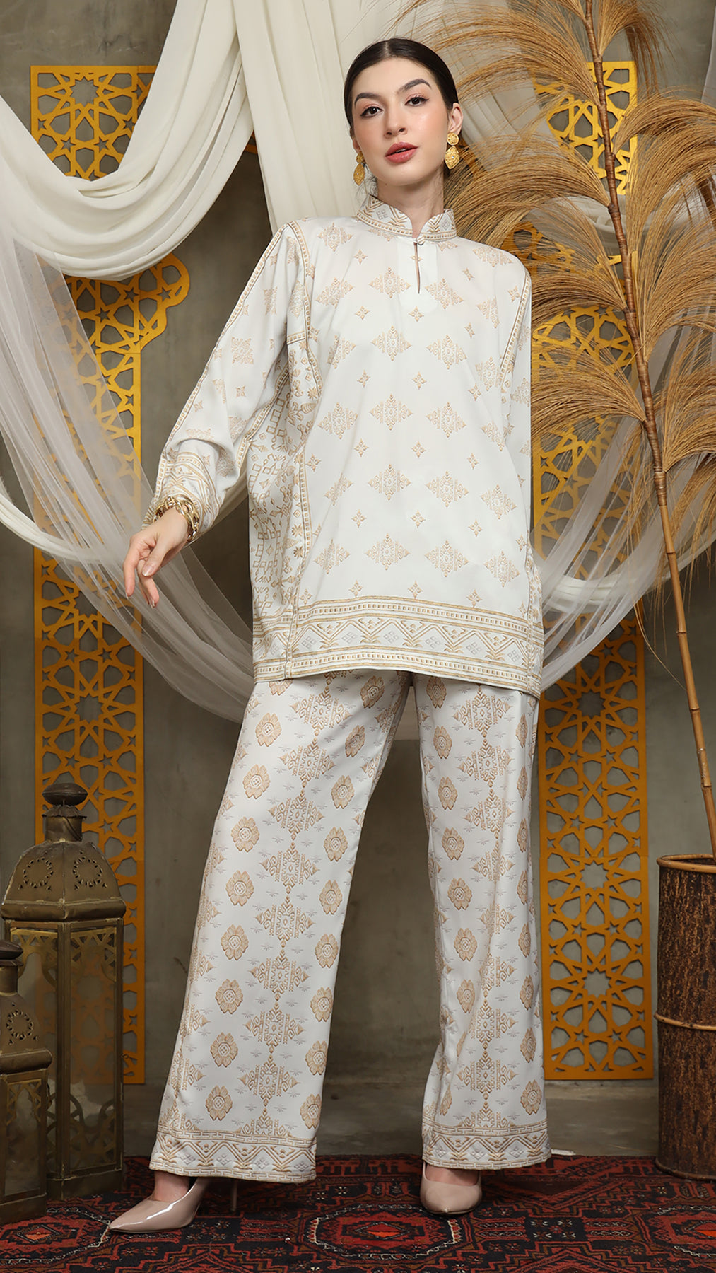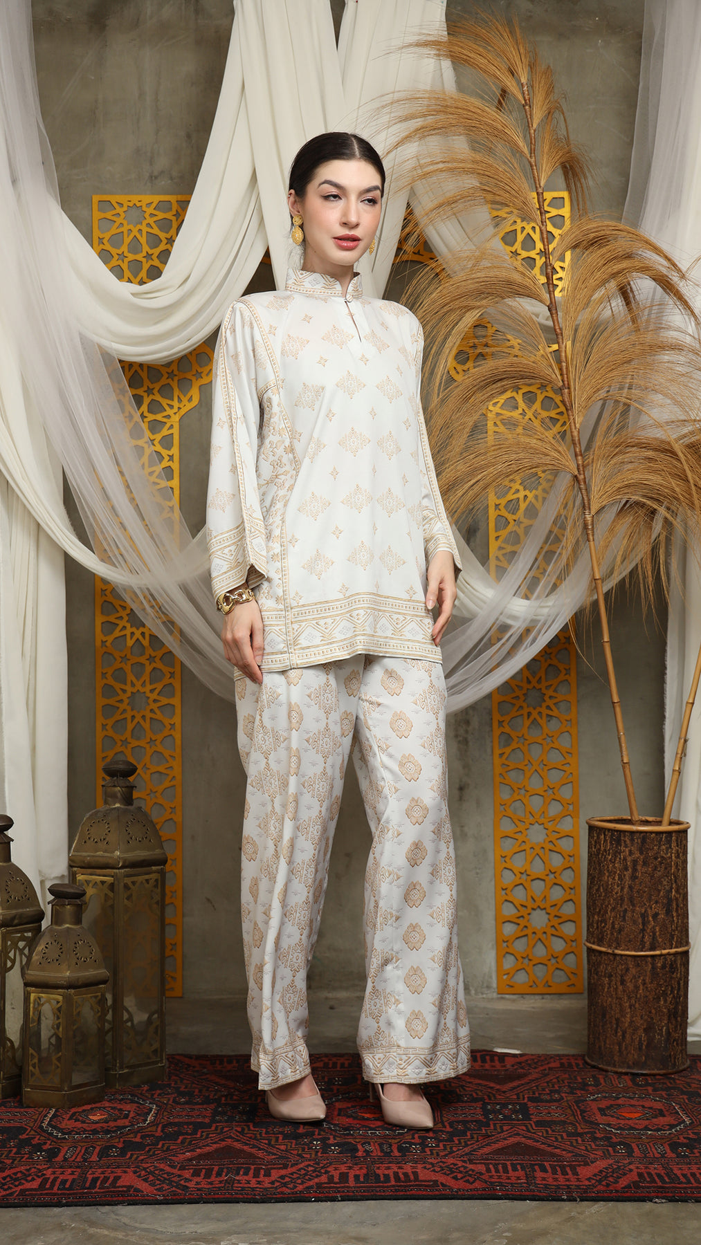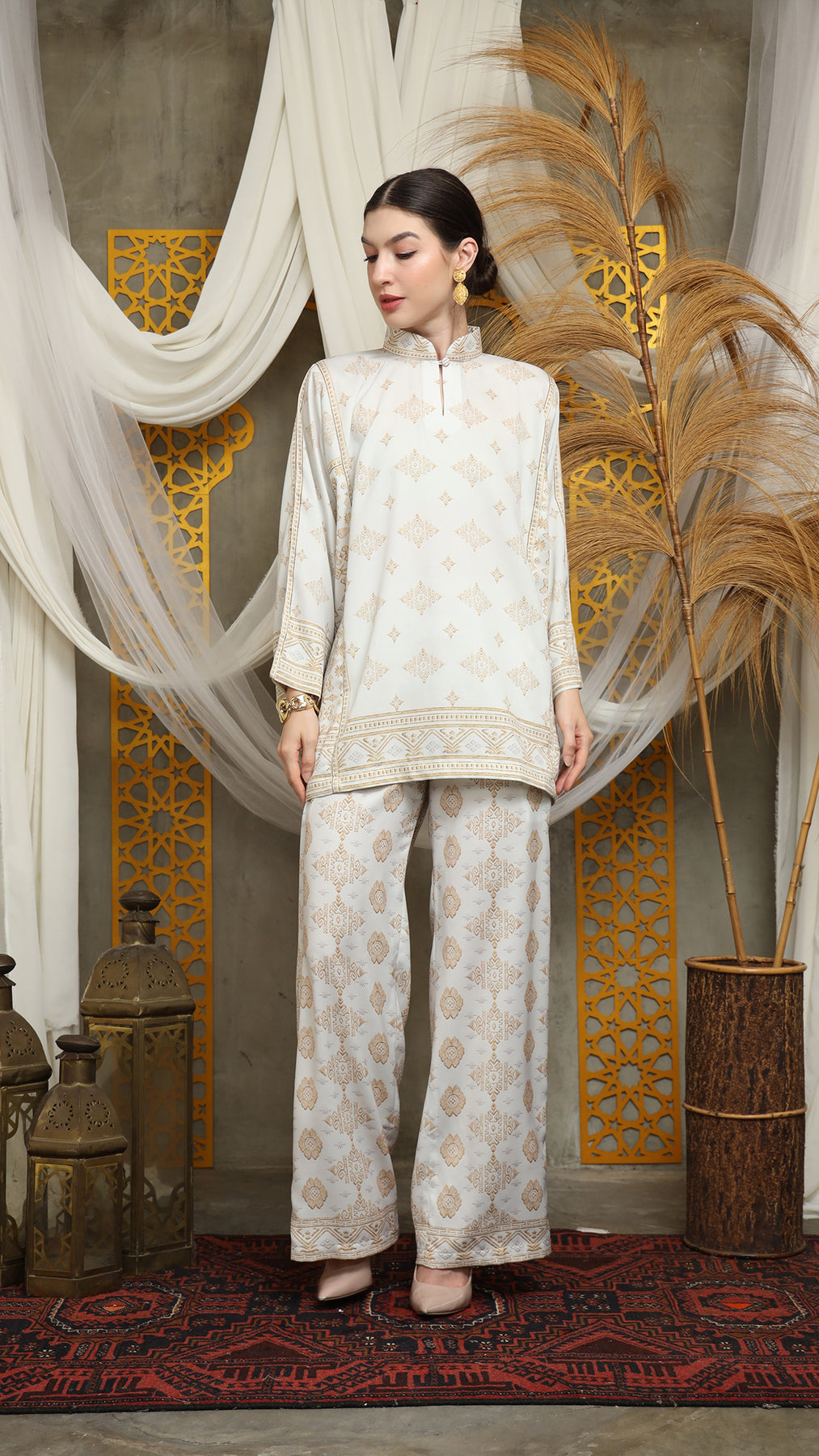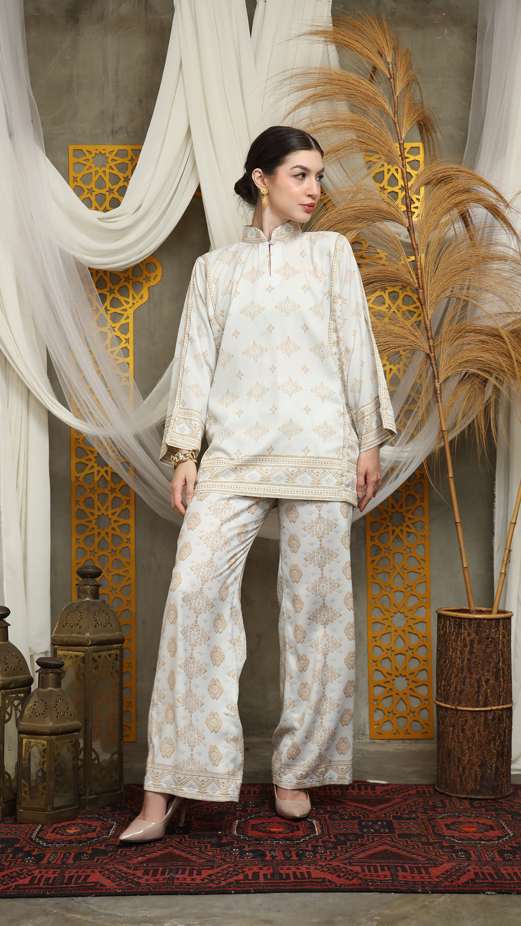 This featured set with pants is a true masterpiece. It offers a flattering fit that enhances your silhouette from every angle. Made from non-transparent fabric, it ensures confidence and comfort, allowing you to move with grace and poise.