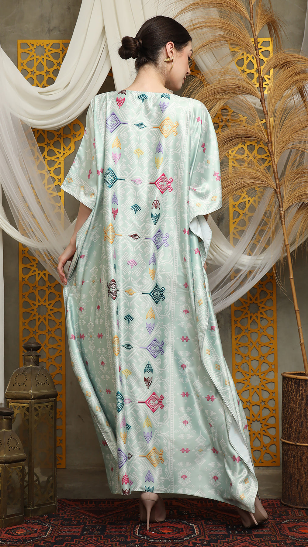 This featured kaftan is a true masterpiece. It offers a flattering fit that enhances your silhouette from every angle. Made from non-transparent fabric, it ensures confidence and comfort, allowing you to move with grace and poise.
