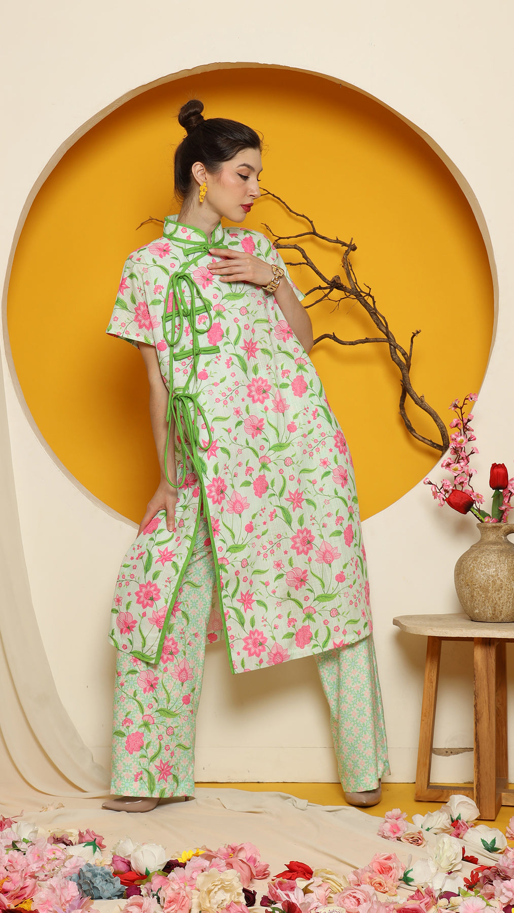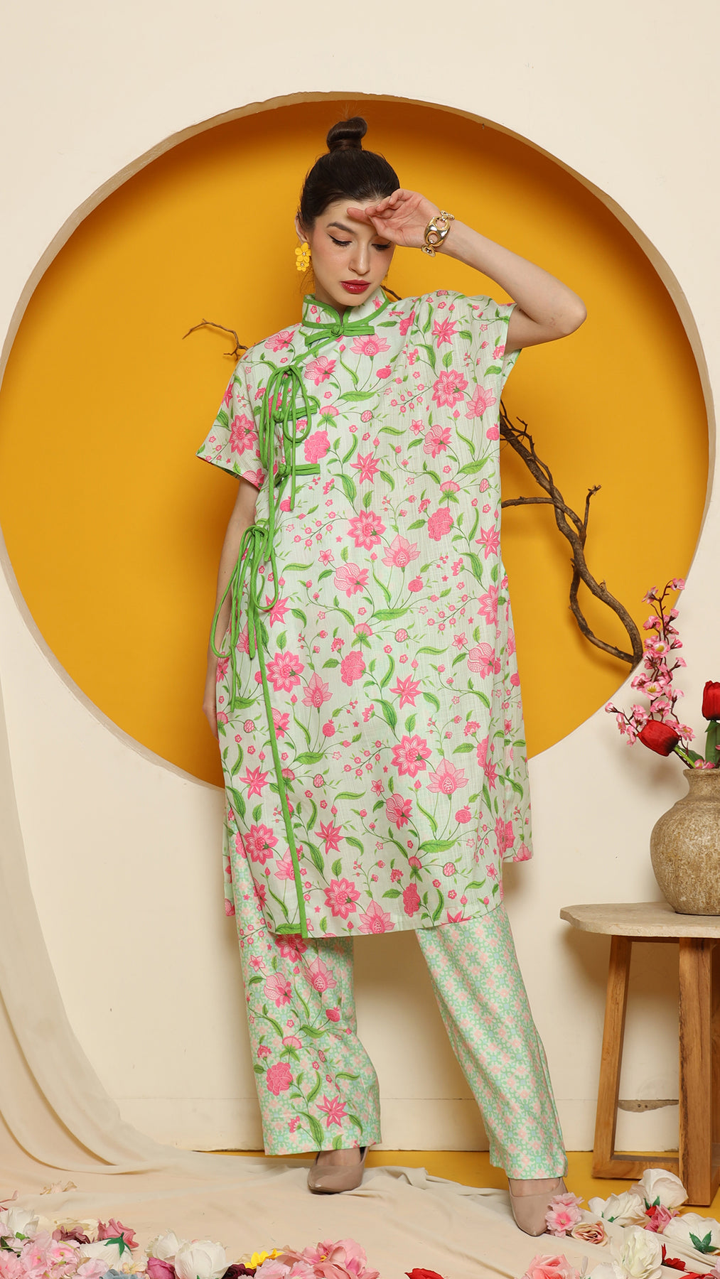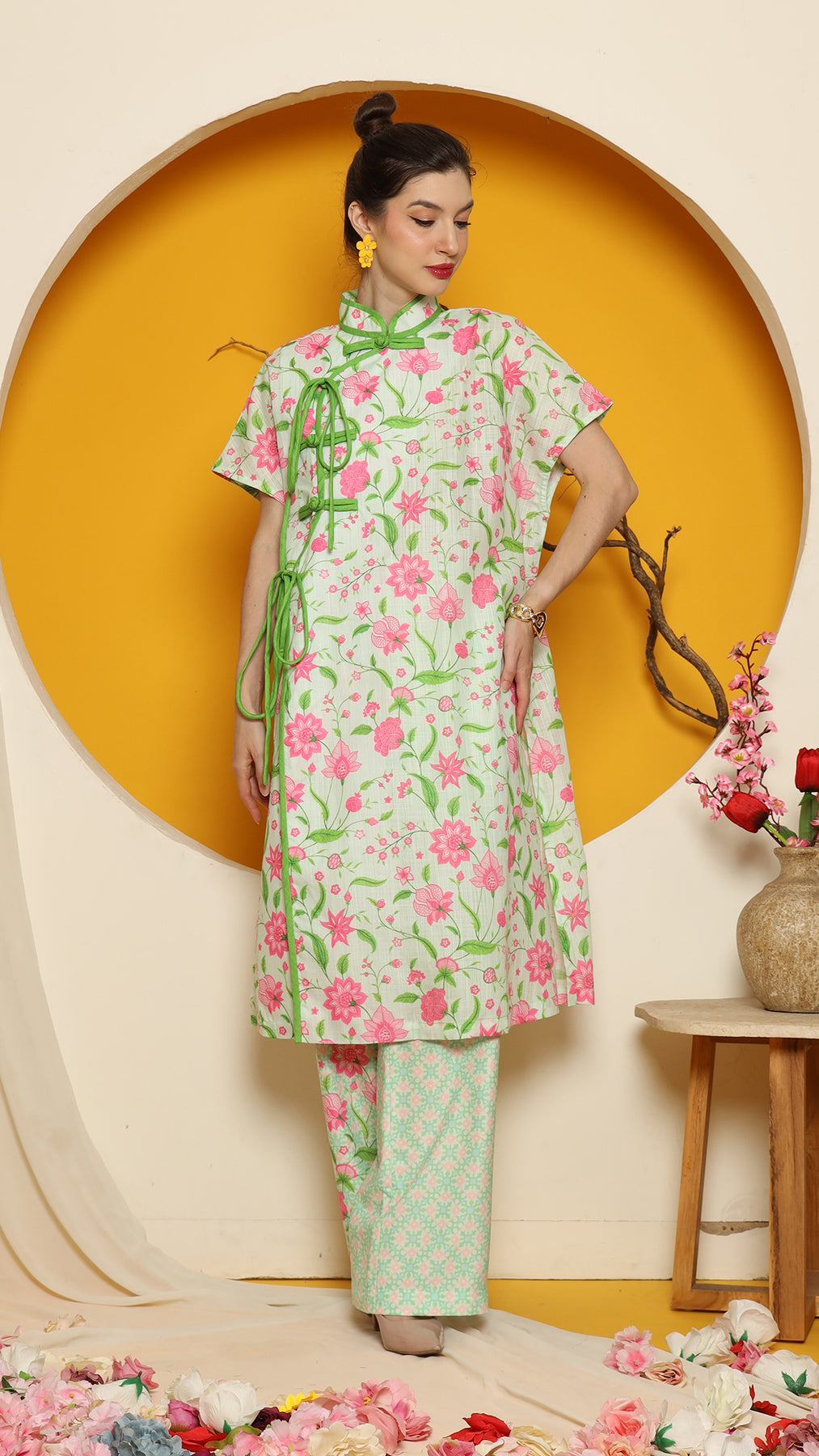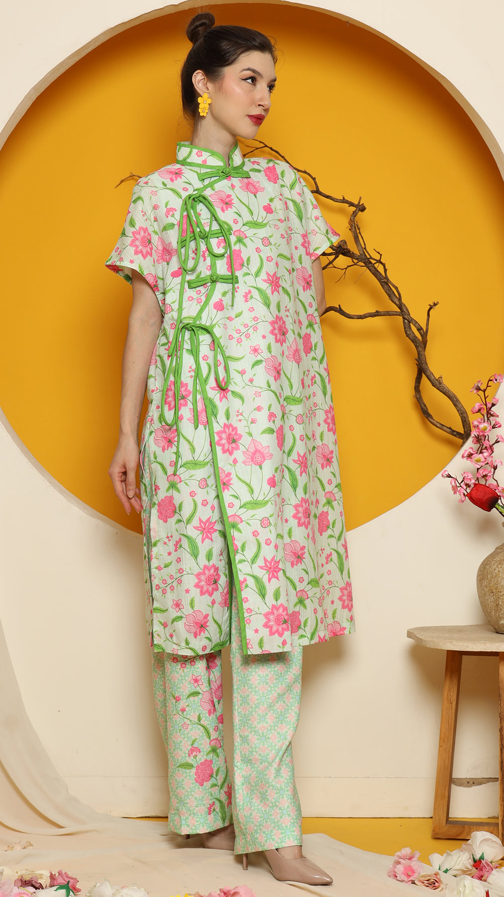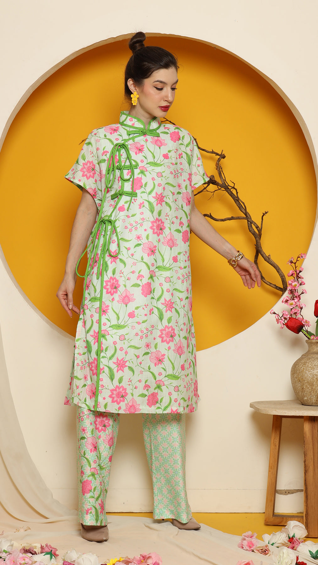 PERANAKAN ORIENTAL FLOWER CHEONGSAM PANT SET