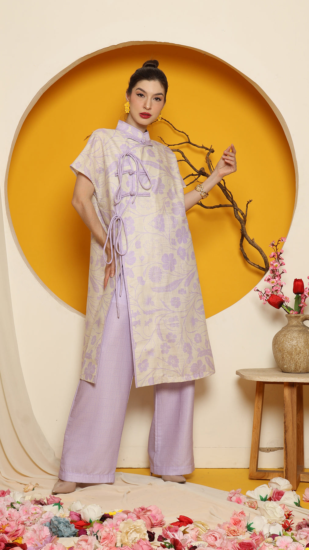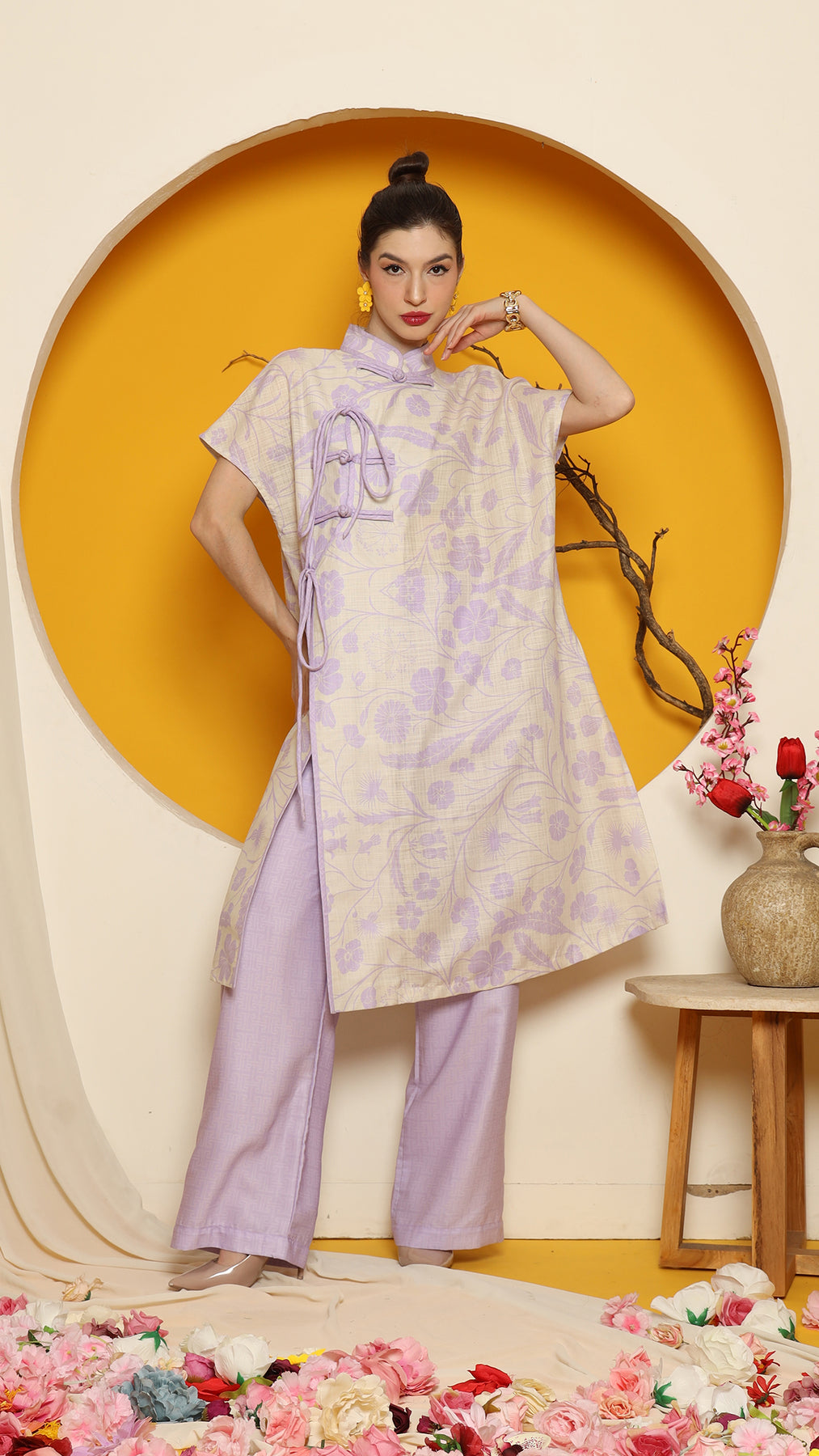 PURPLE ORIENTAL FLOWER CHEONGSAM PANT SET