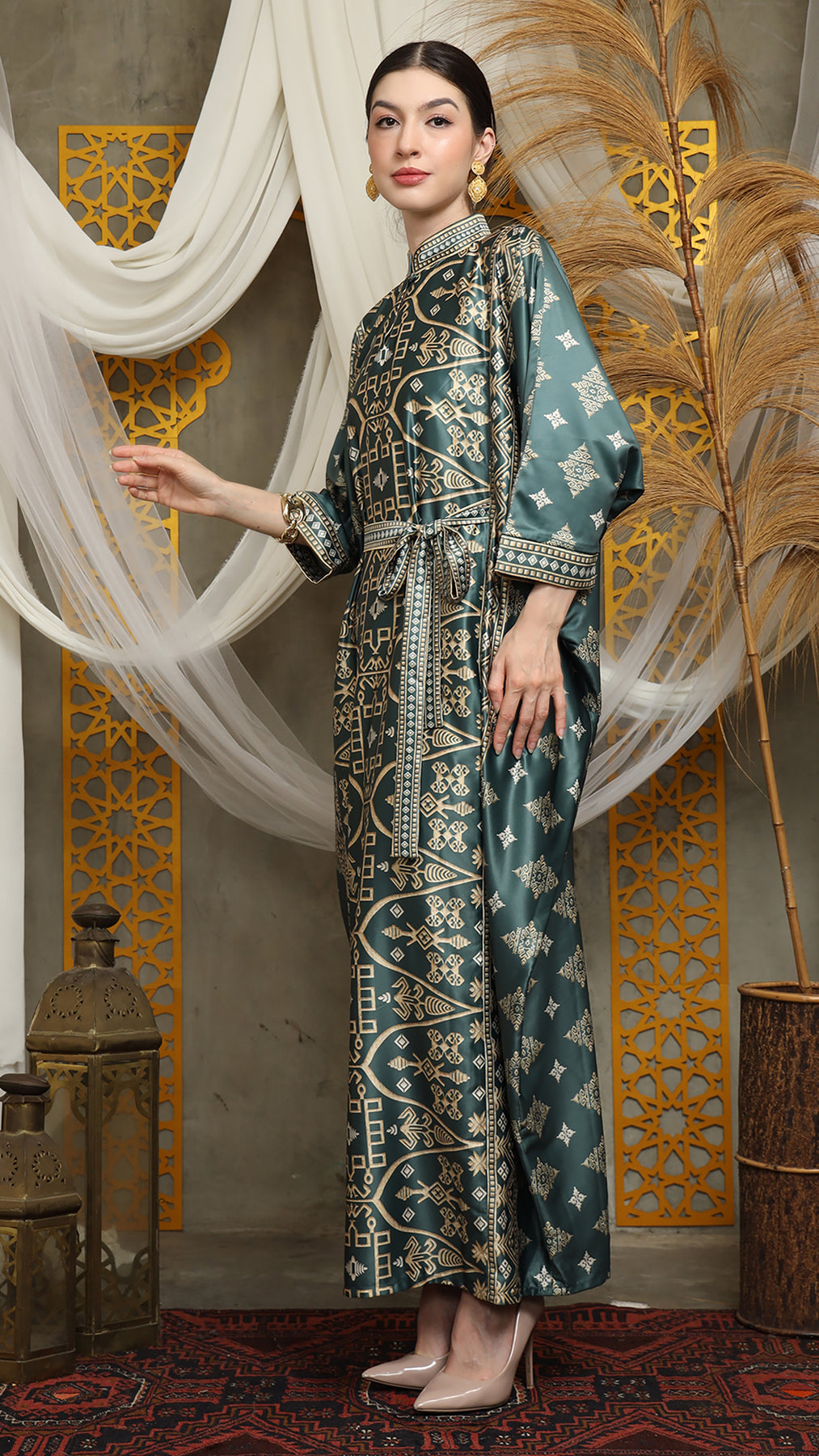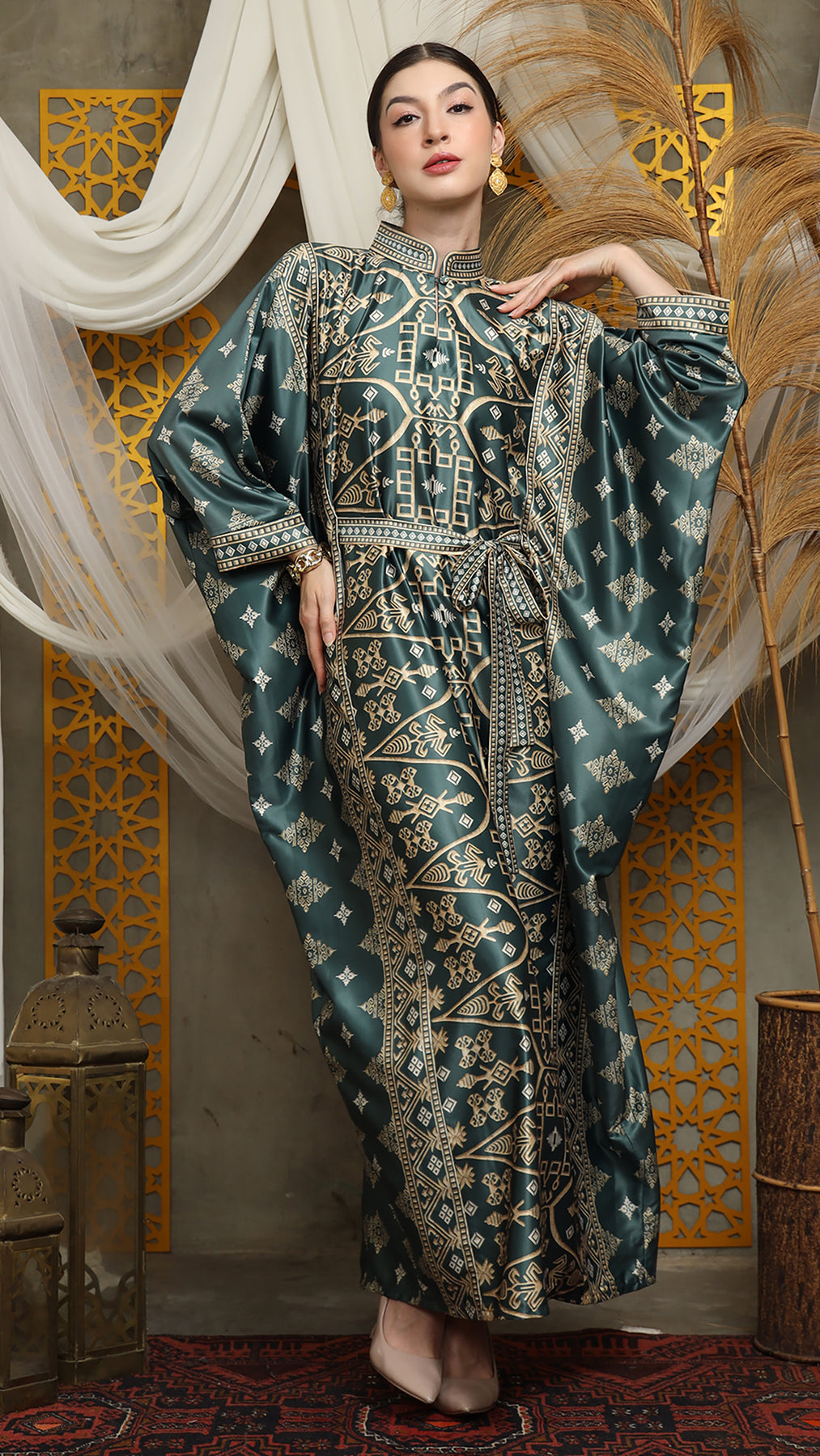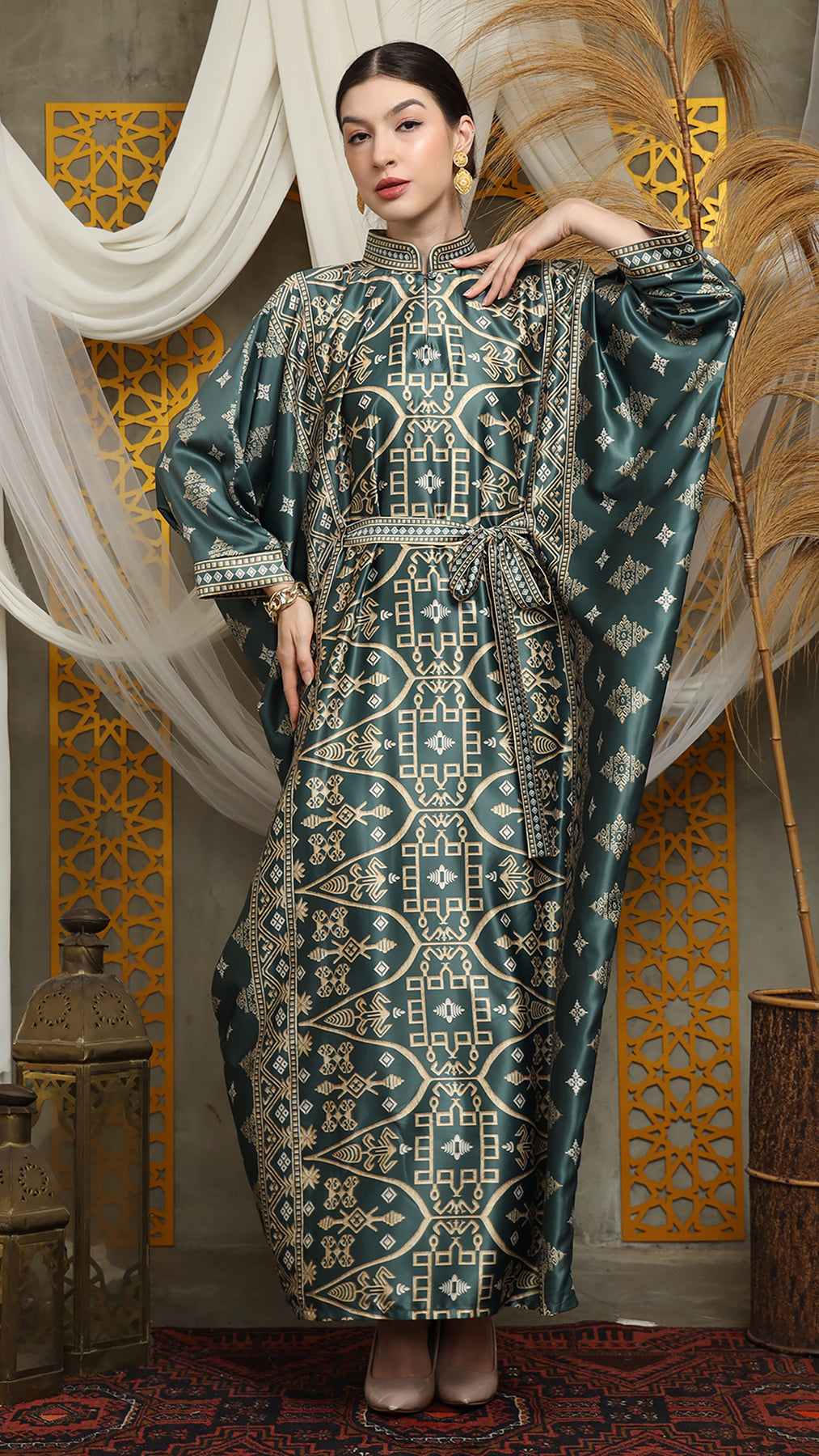 This featured dress kaftan is a true masterpiece. It offers a flattering fit that enhances your silhouette from every angle. Made from non-transparent fabric, it ensures confidence and comfort, allowing you to move with grace and poise.