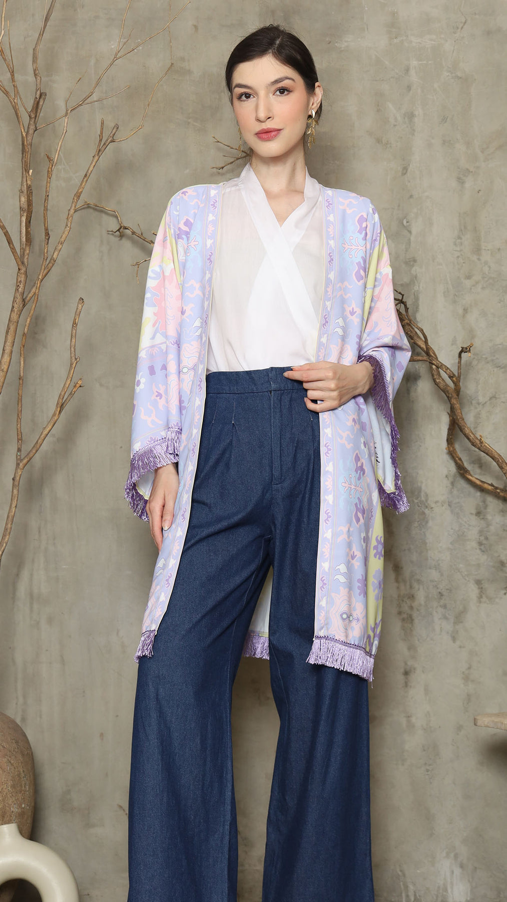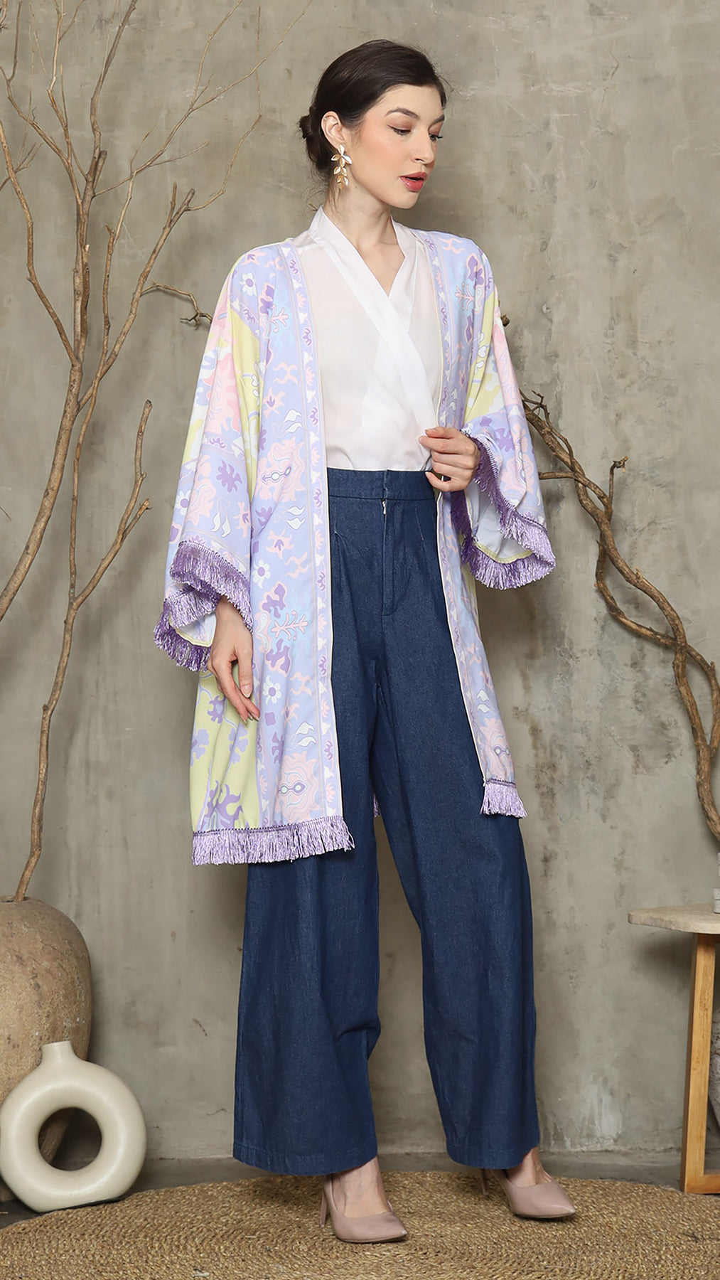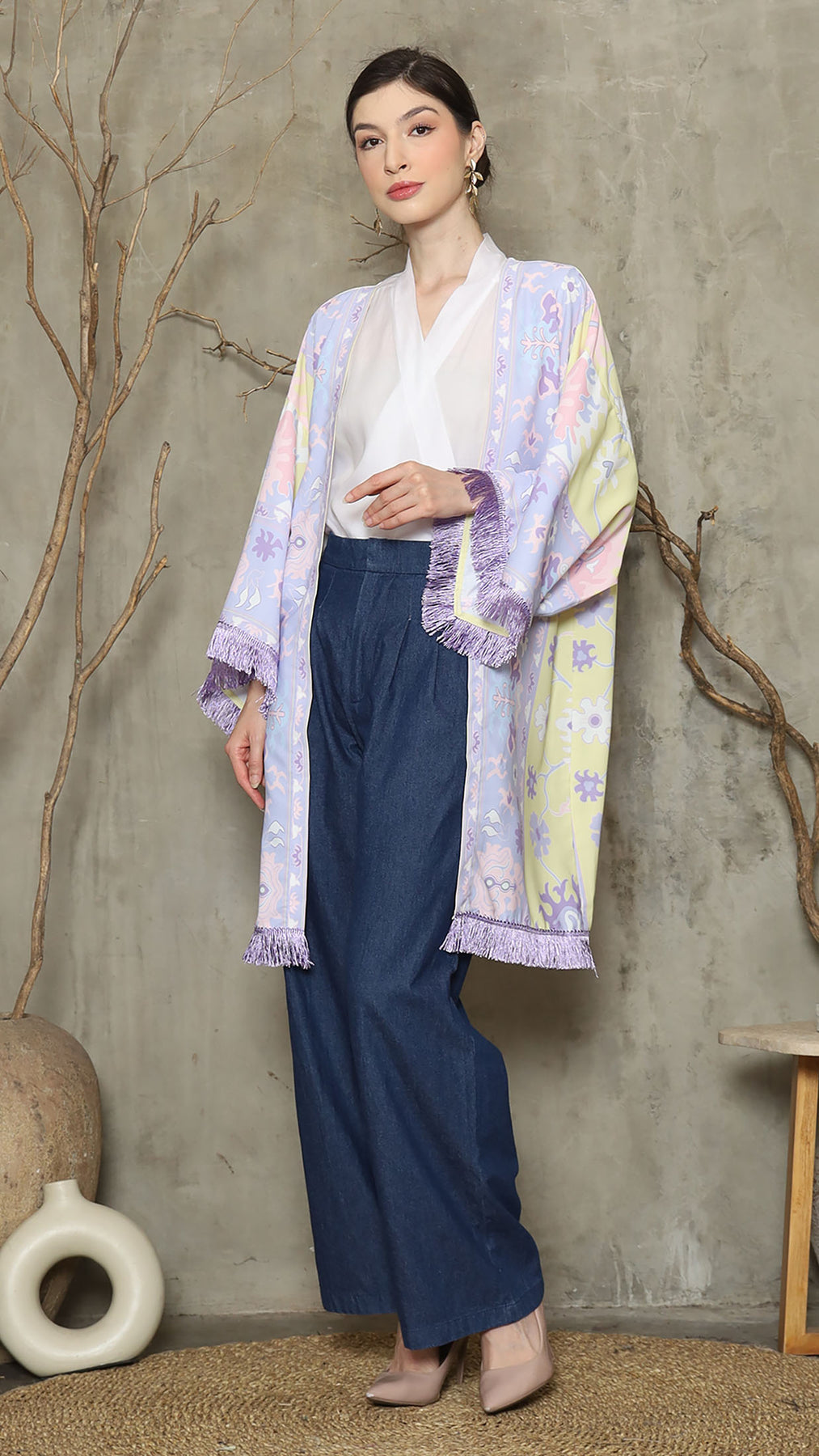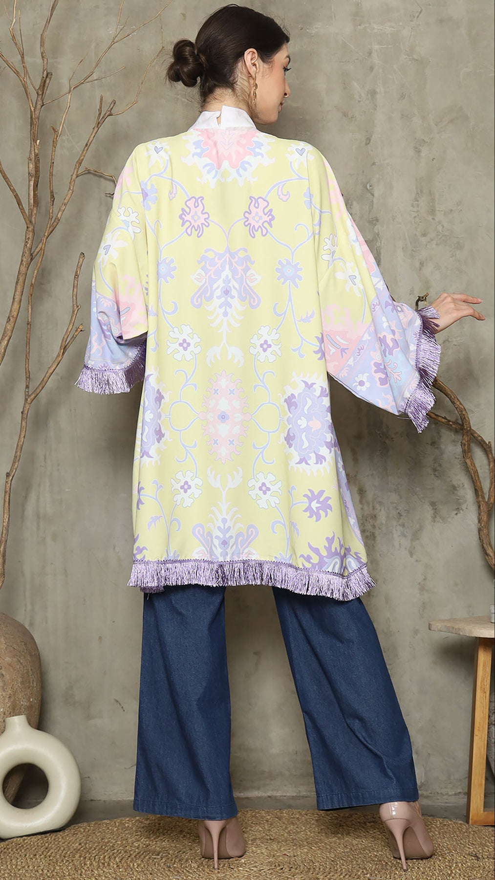Outerwear is crafted from premium satin. It comes as a 2-piece set: an outer layer and an inner layer. The inner piece features a beautiful patterned design with a back button for added charm. Elegant and versatile, it’s perfect for any occasion, offering a timeless blend of sophistication and comfort.