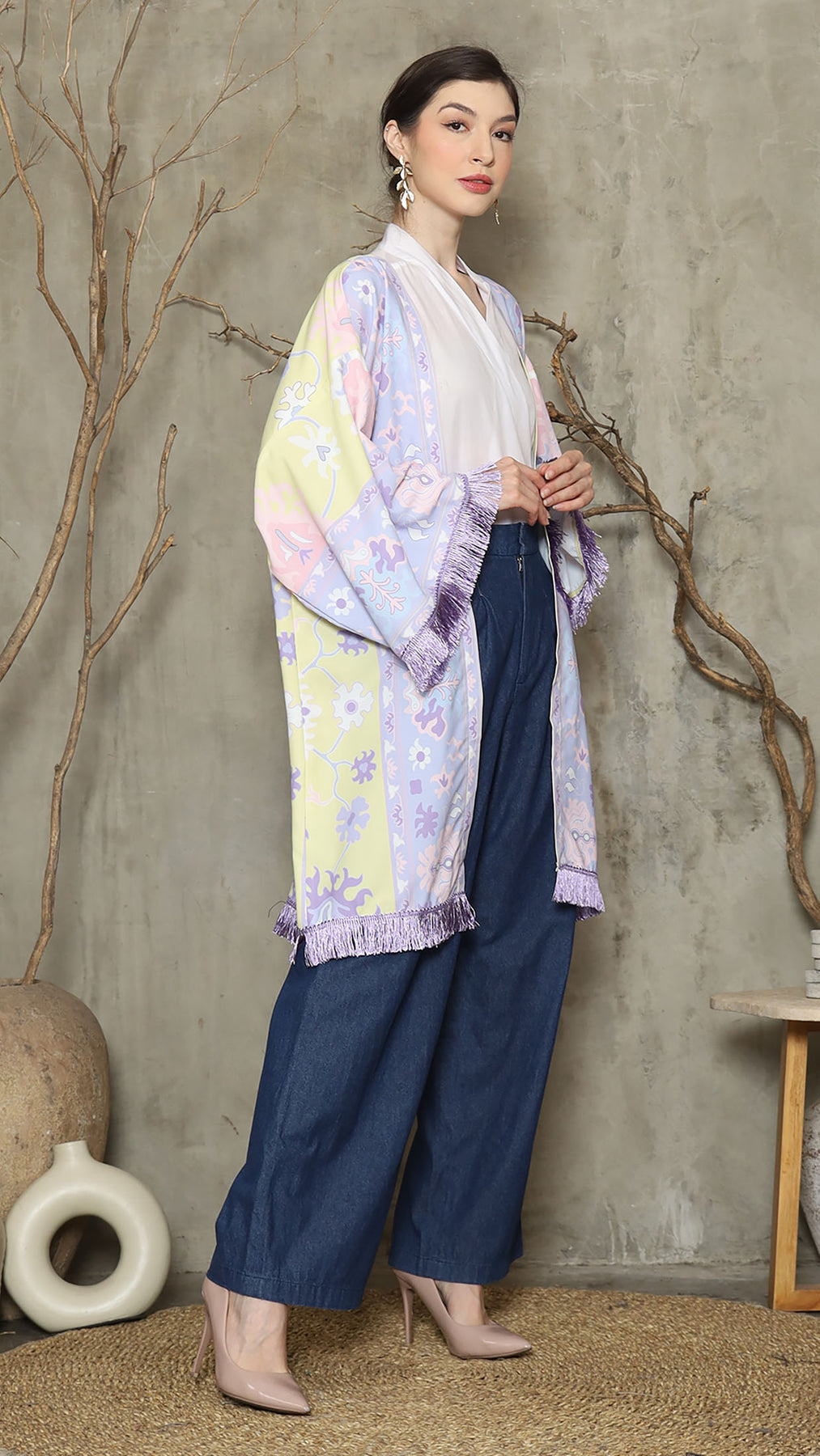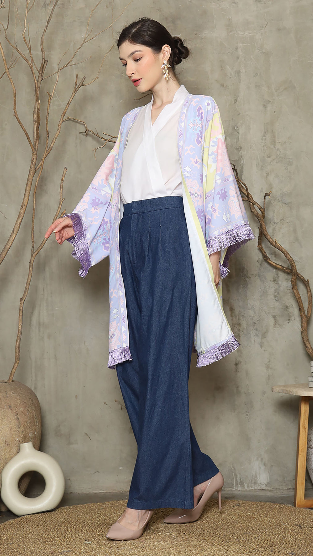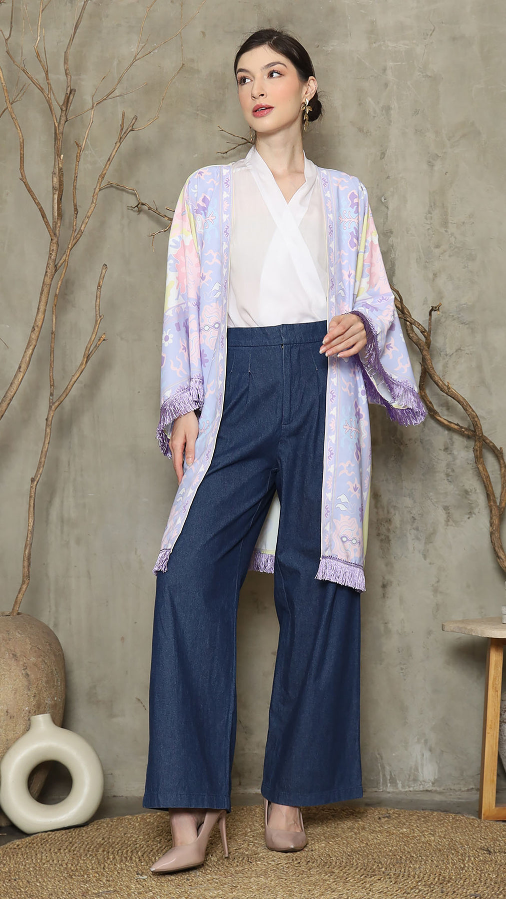 Outerwear is crafted from premium satin. It comes as a 2-piece set: an outer layer and an inner layer. The inner piece features a beautiful patterned design with a back button for added charm. Elegant and versatile, it’s perfect for any occasion, offering a timeless blend of sophistication and comfort.