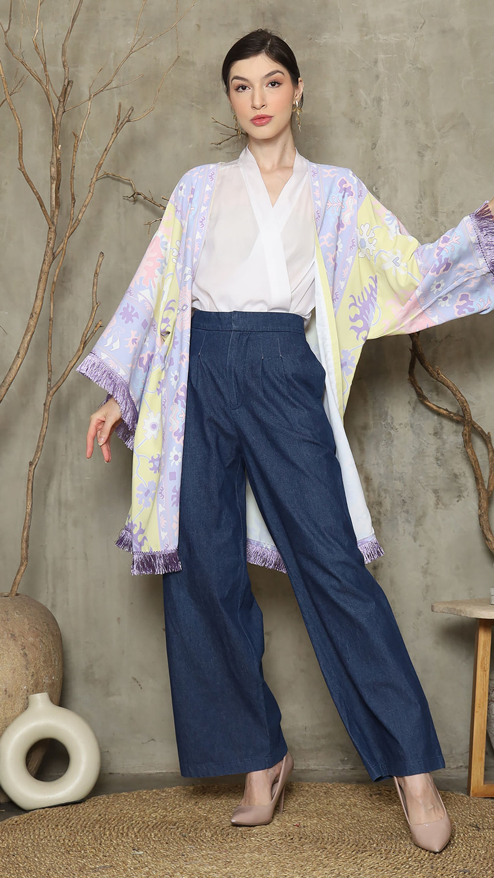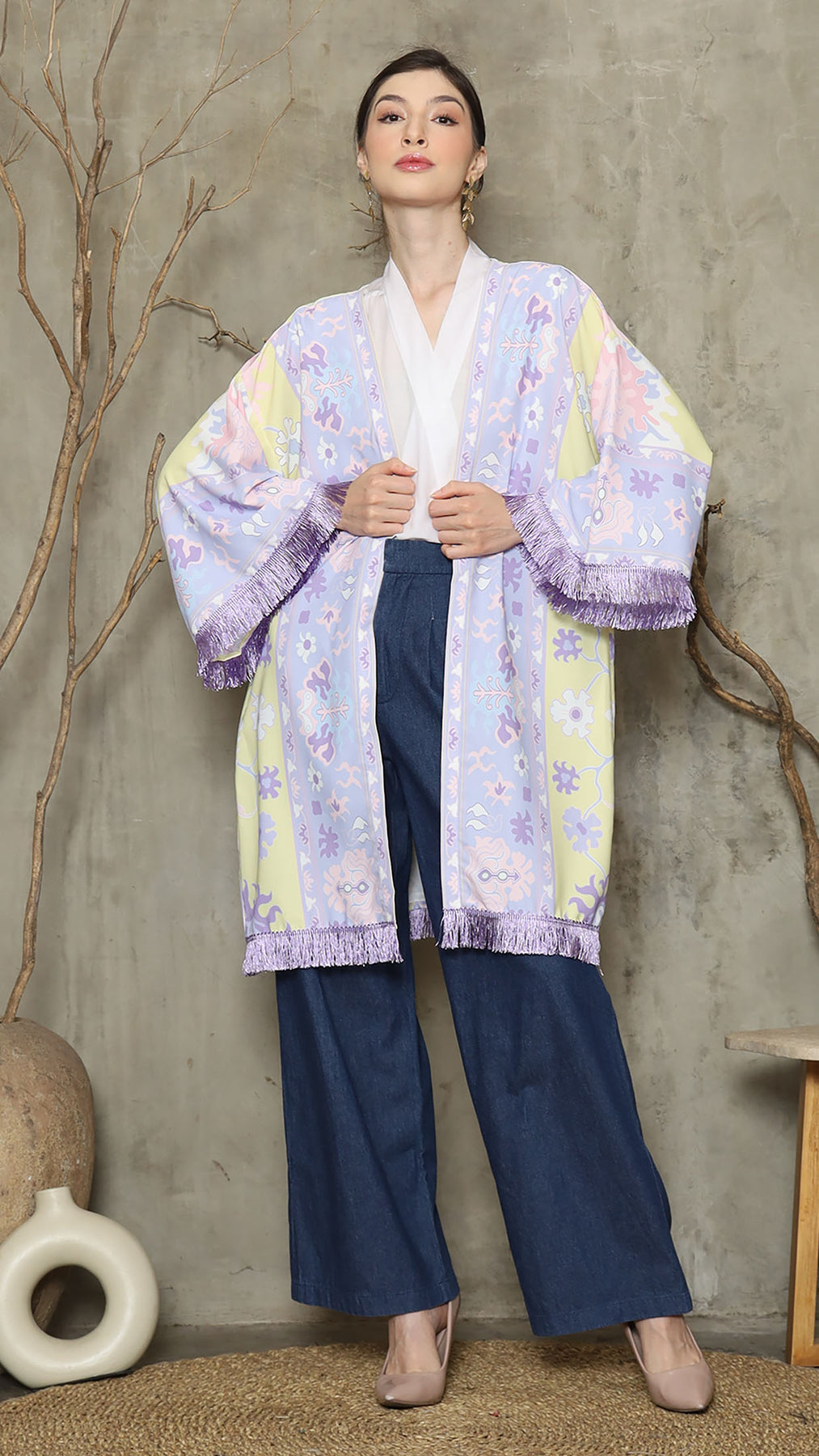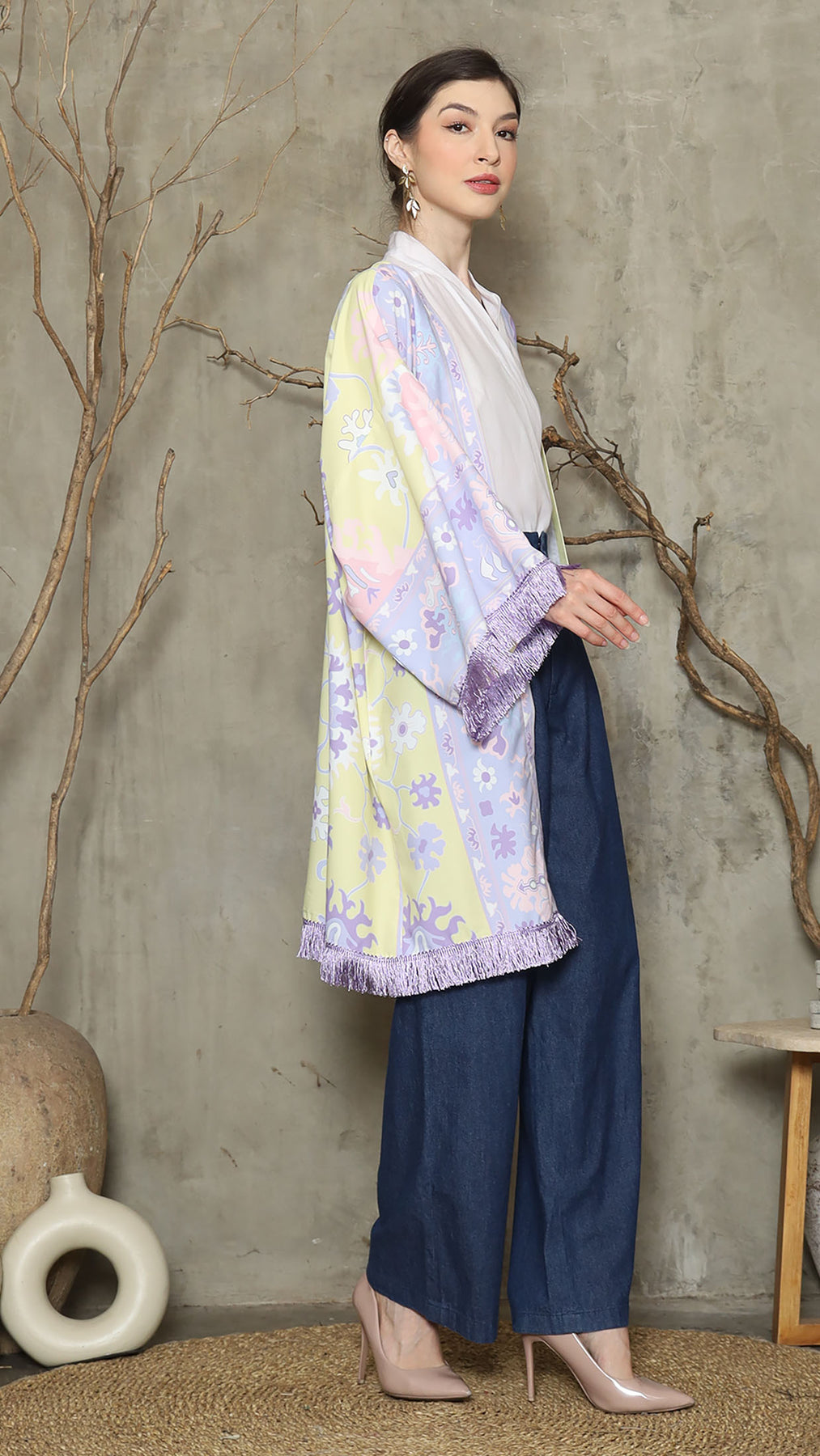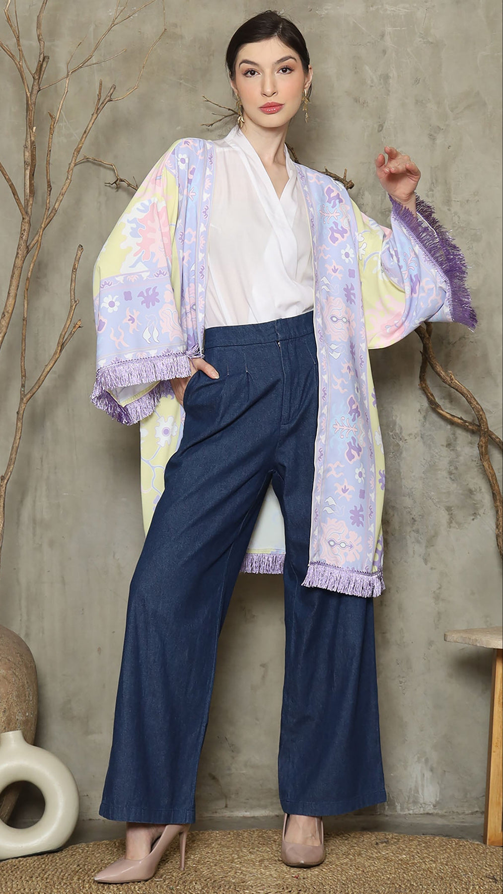 Outerwear is crafted from premium satin. It comes as a 2-piece set: an outer layer and an inner layer. The inner piece features a beautiful patterned design with a back button for added charm. Elegant and versatile, it’s perfect for any occasion, offering a timeless blend of sophistication and comfort.